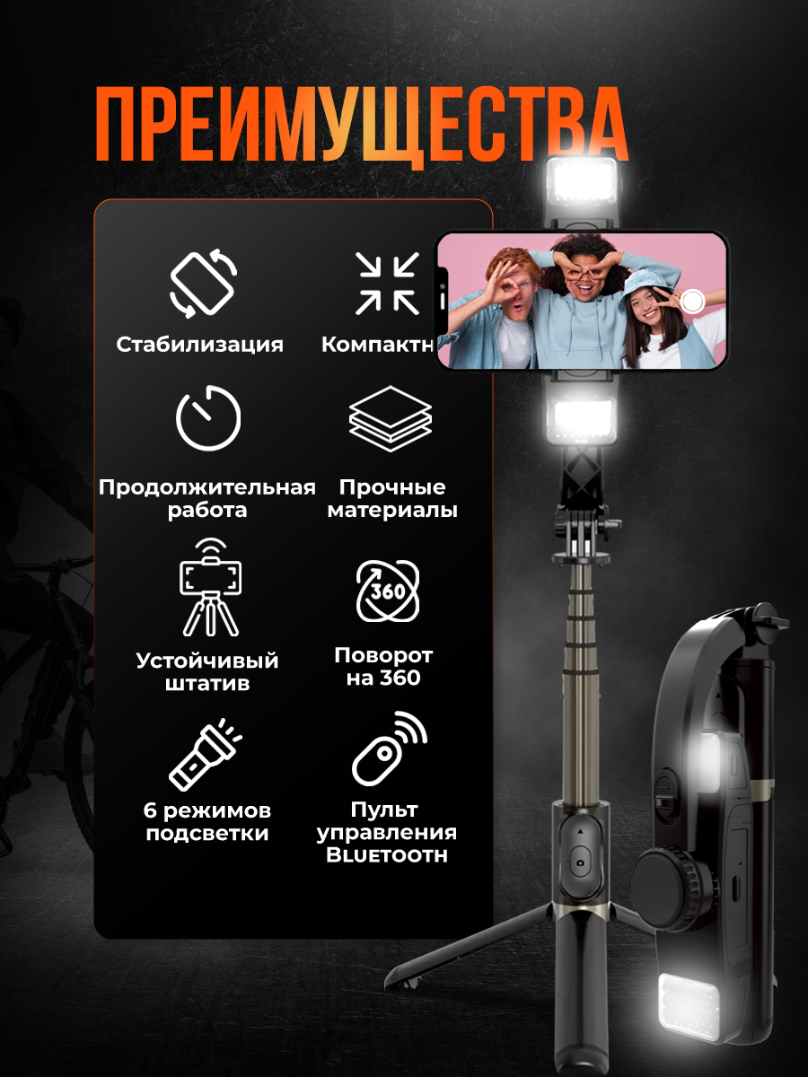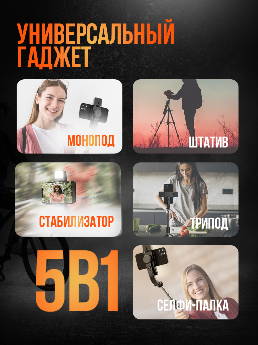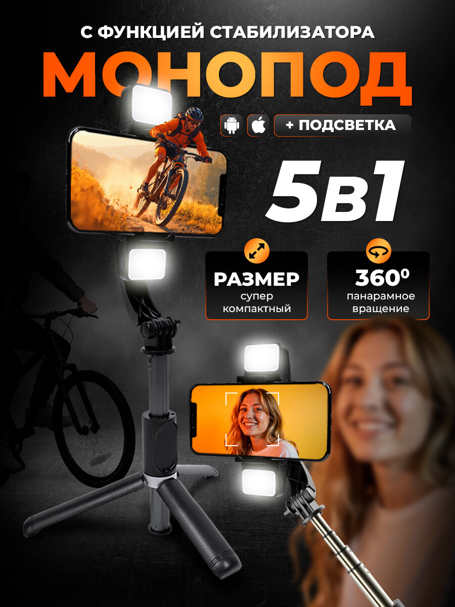Стабилизатор штатив для телефона, автостабилизация, двойная подсветка, 78.5 см, держатель для телефона, штатив, черный: сравнение цен, характеристики, фото, актуальное наличие и цены.