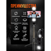 | Особенности | Bluetooth, аккумулятор, настройка баланса, пульт ДУ, с поворотом, съемка в вертикальном формате, удлинительная штанга |