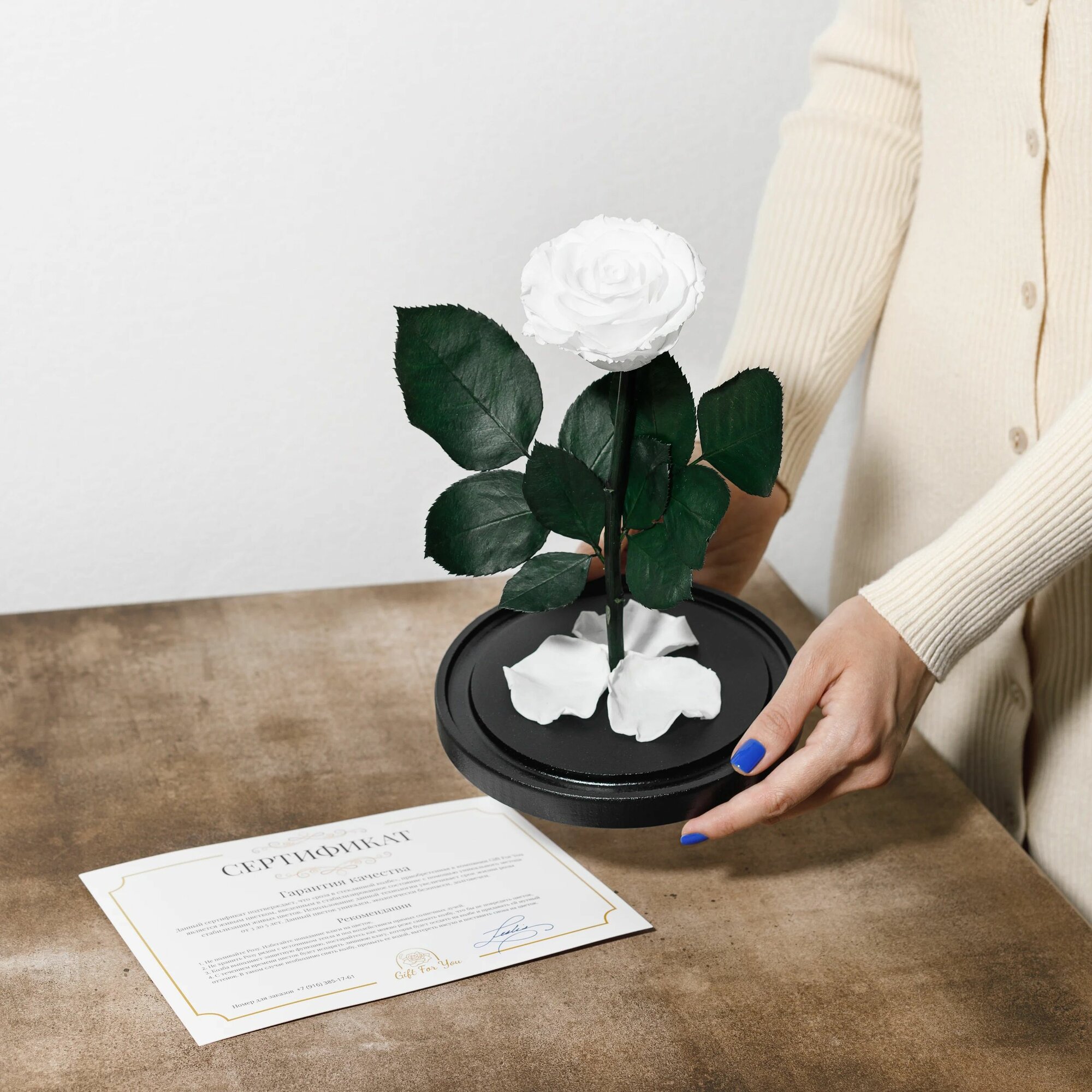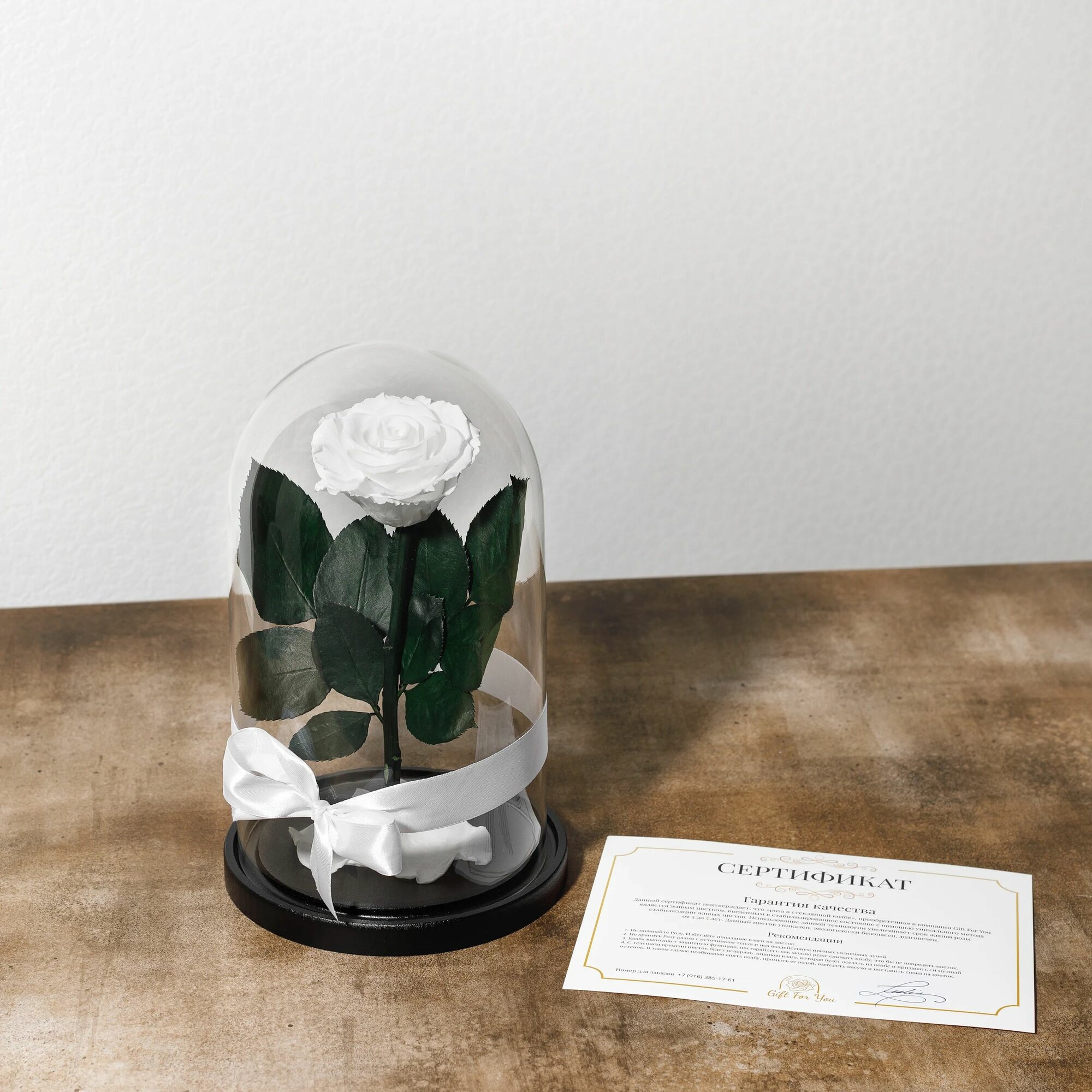 Стабилизированные цветы в стекле, Роза в колбе живая Glamur Plus белая 27×16,5 см, GIFT4YOU