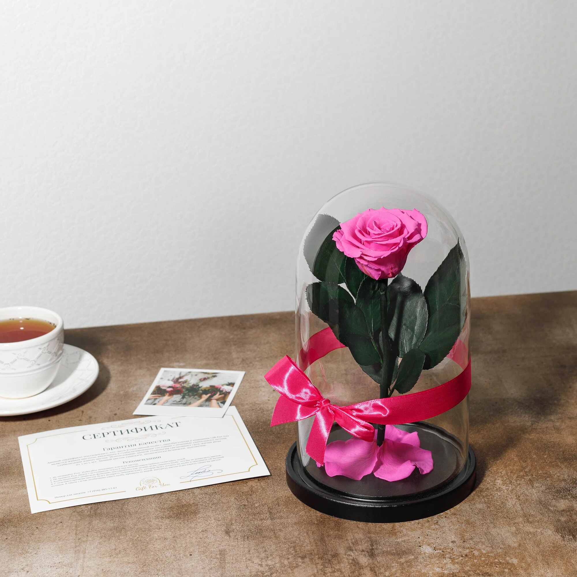 Купить Стабилизированные цветы в стекле, Роза в колбе живая Glamur Plus фуксия 27×16,5 см, подарок набор для женщины, GIFT4YOU с доставкой по всей России.