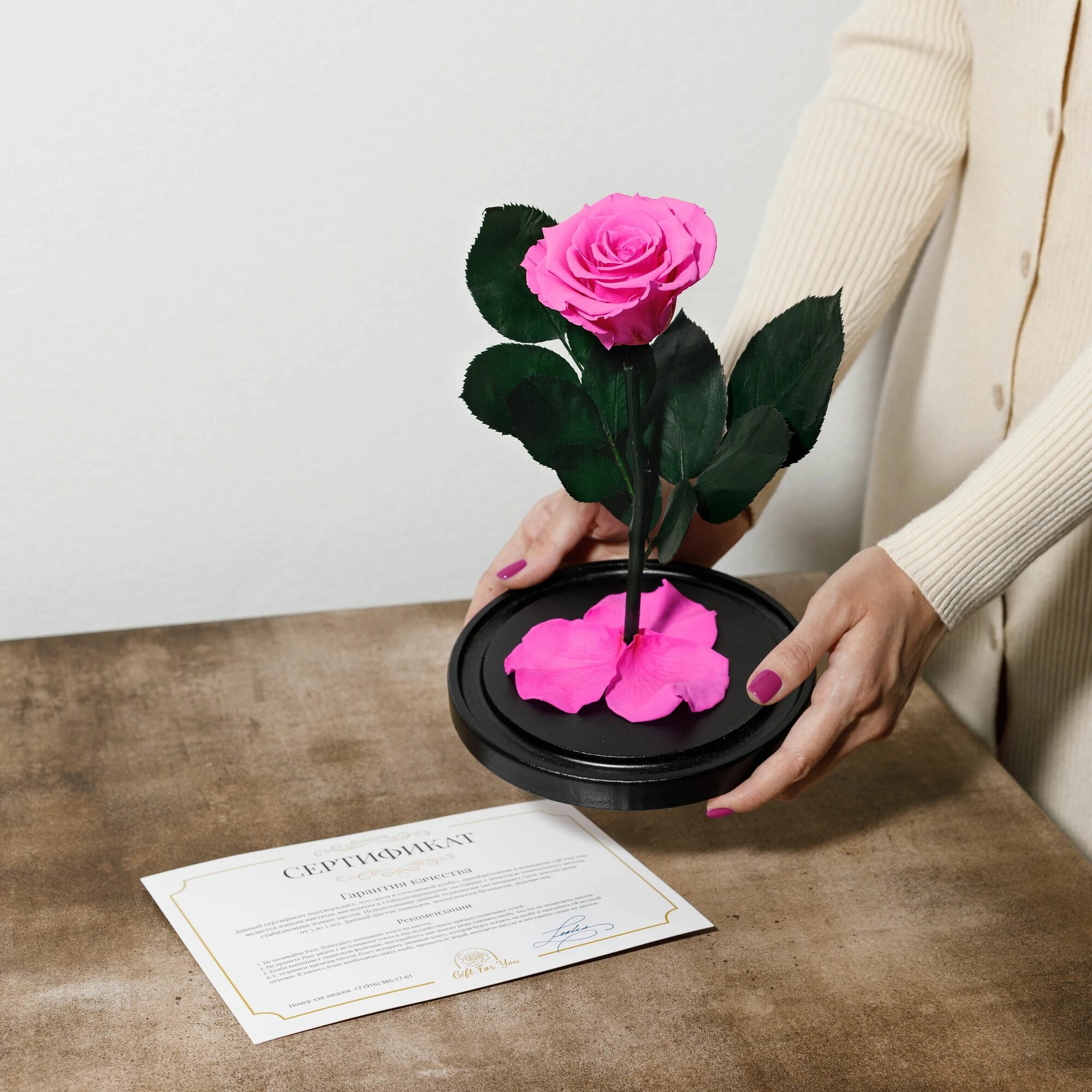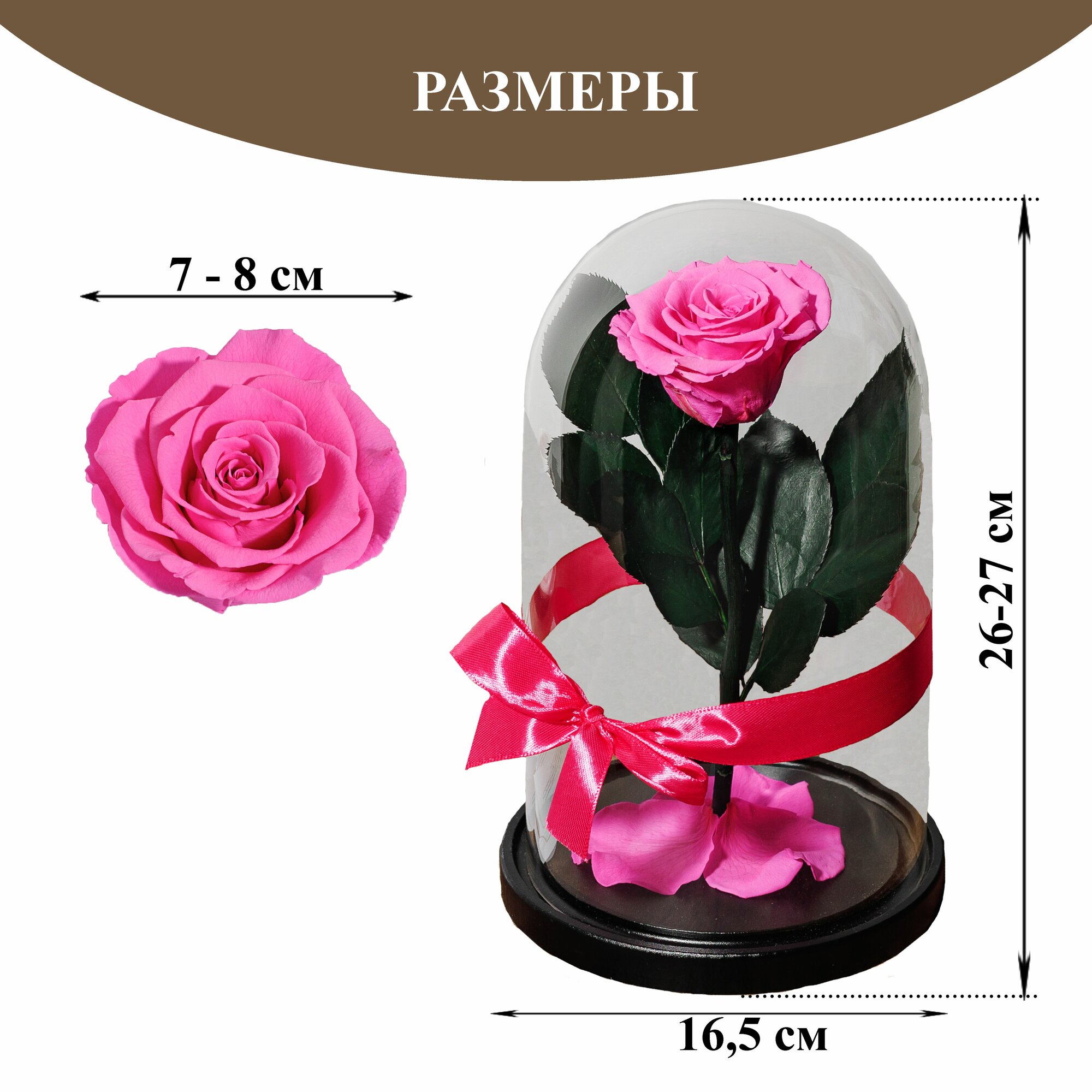 Стабилизированные цветы в стекле, Роза в колбе живая Glamur Plus фуксия 27×16,5 см, подарок набор для женщины, GIFT4YOU
