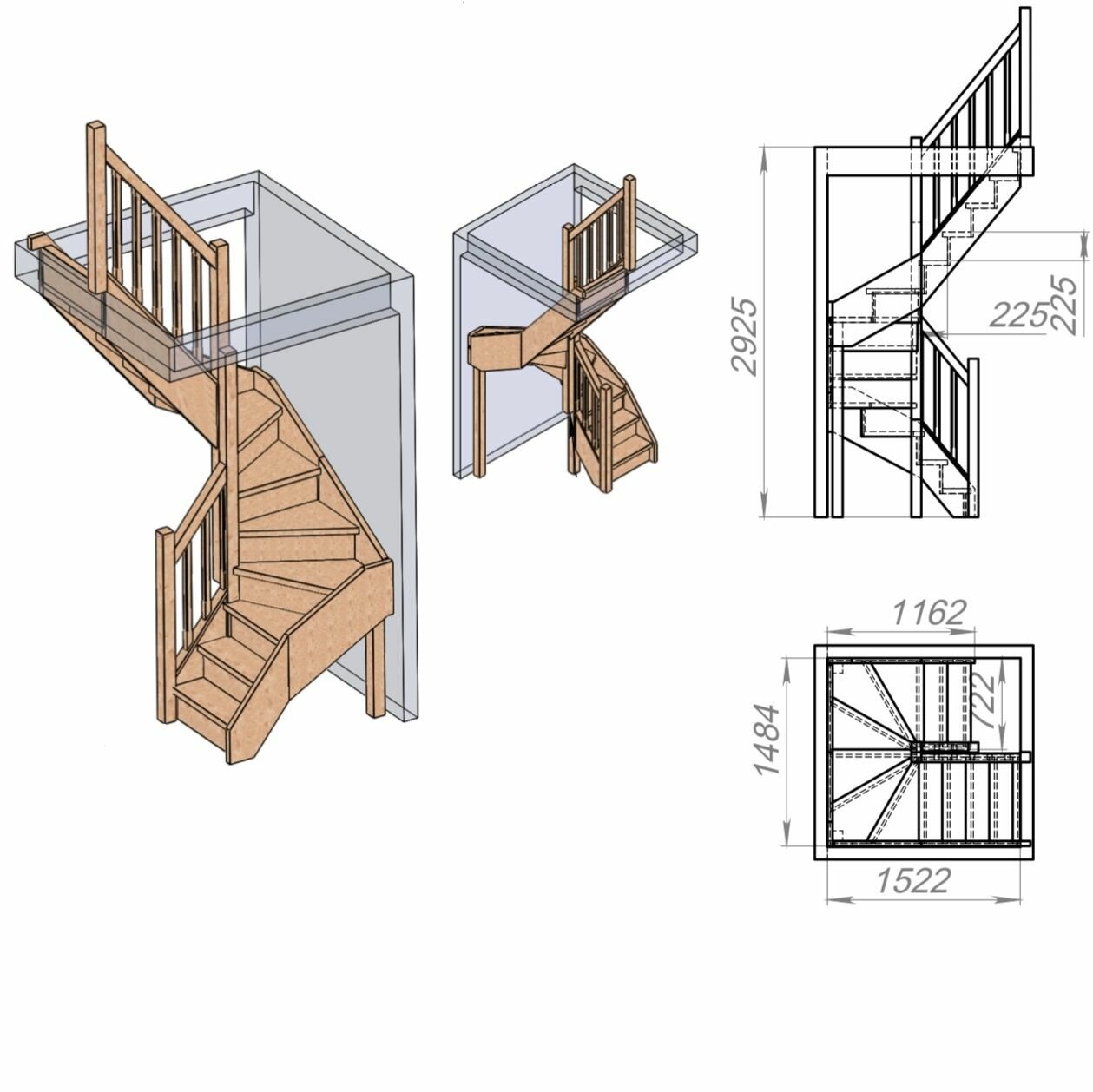 | Подробная комплектация | Готовые элементы лестницы, метизы, заглушки, инструкция |