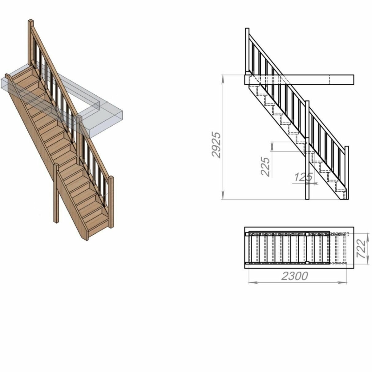 | Комплектация лестницы | балясины, заглушки, подступенок, поручень, столбы, ступени, тетива |