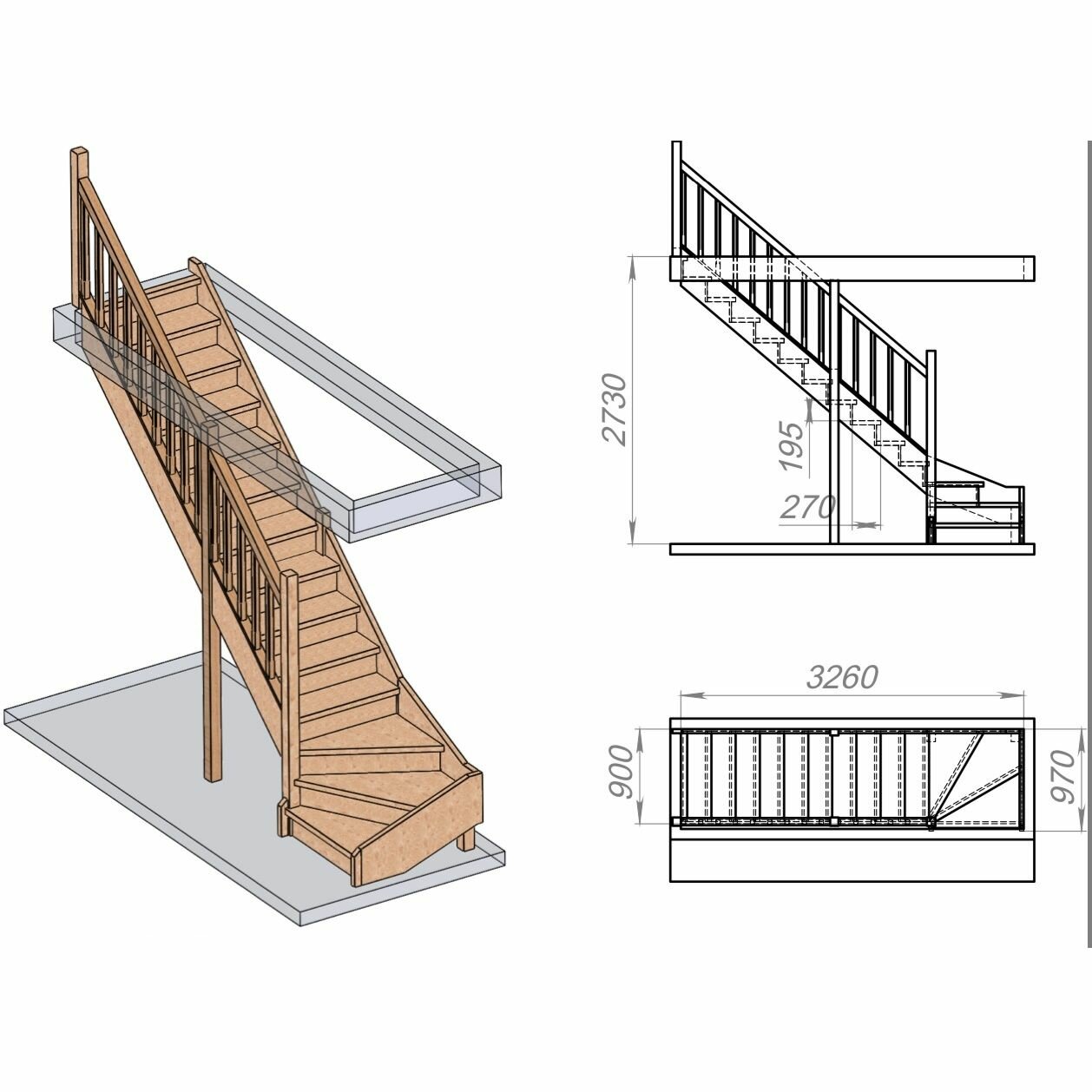 Стаиршоп Деревянная лестница для дома проем от 950х3260 мм высота 2730 мм (левая): сравнение цен, характеристики, фото, актуальное наличие и цены.