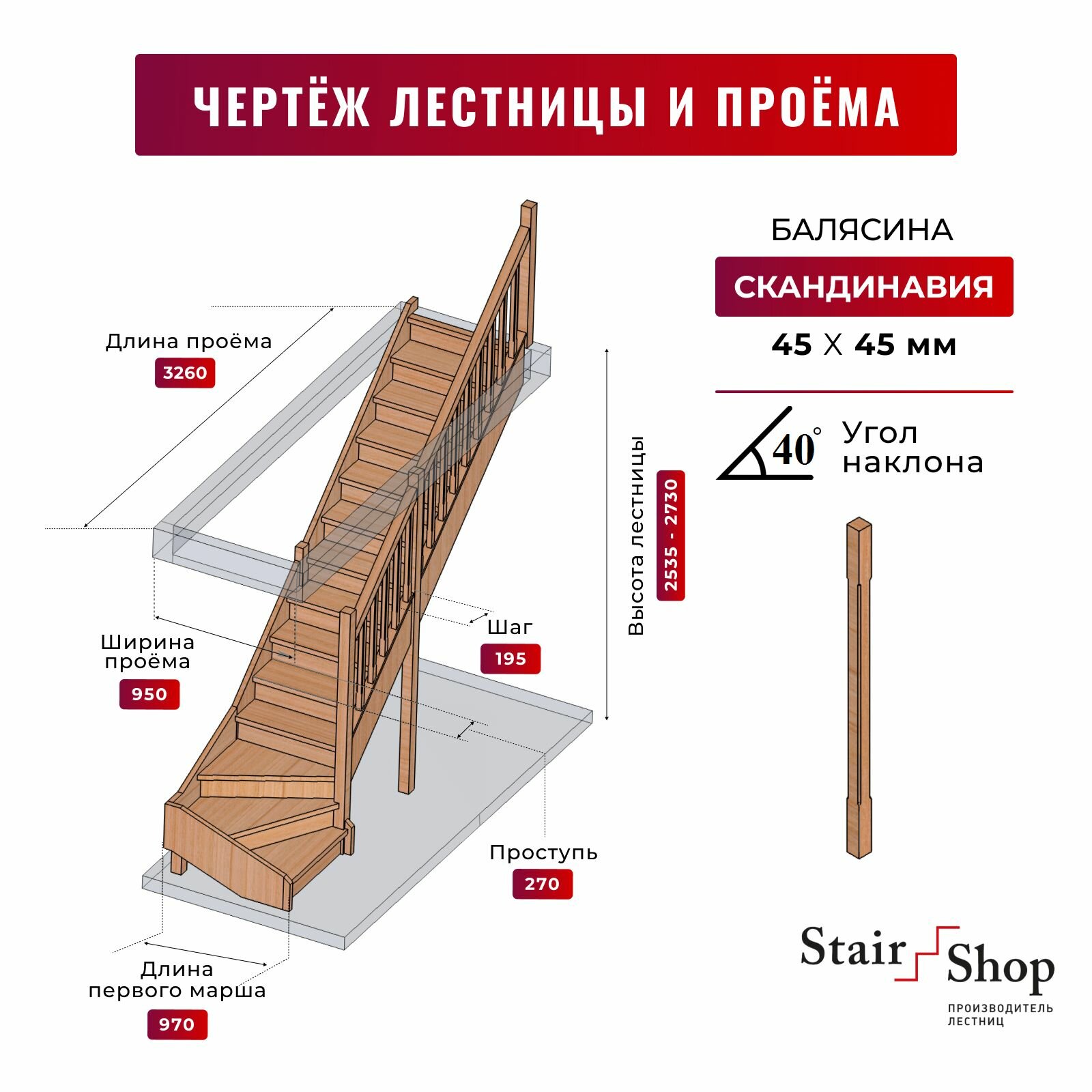 Стаиршоп Деревянная лестница для дома проем от 950х3260 мм высота 2730 мм (правая): сравнение цен, характеристики, фото, актуальное наличие и цены.