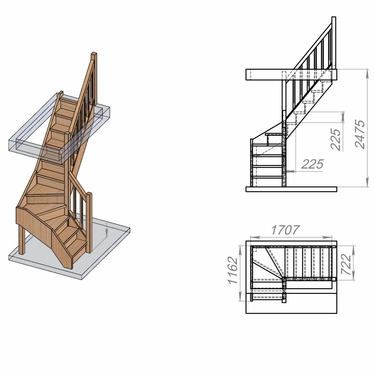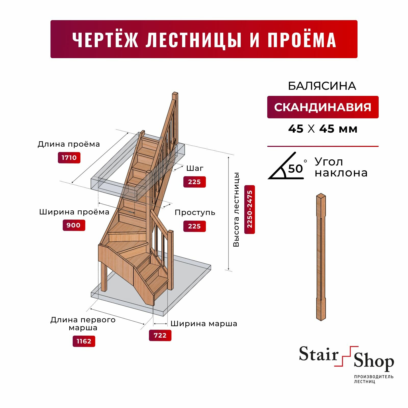 Стаиршоп Деревянная лестница на второй этаж для проема от 900х1710 мм высота 2475 мм (правая): сравнение цен, характеристики, фото, актуальное наличие и цены.