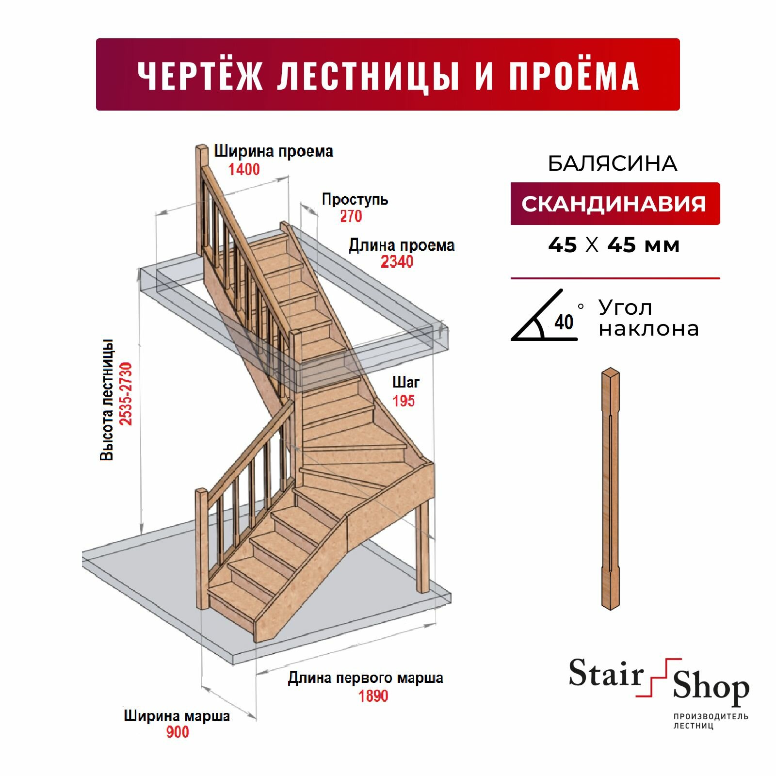 Стаиршоп Лестница деревянная на второй этаж для проема от 1400х2340 мм высота 2730 мм (левая): сравнение цен, характеристики, фото, актуальное наличие и цены.