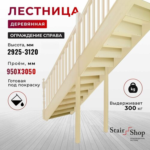 Стаиршоп Лестница межэтажная деревянная проем от 950х3050 мм высота до 3120 (правая)