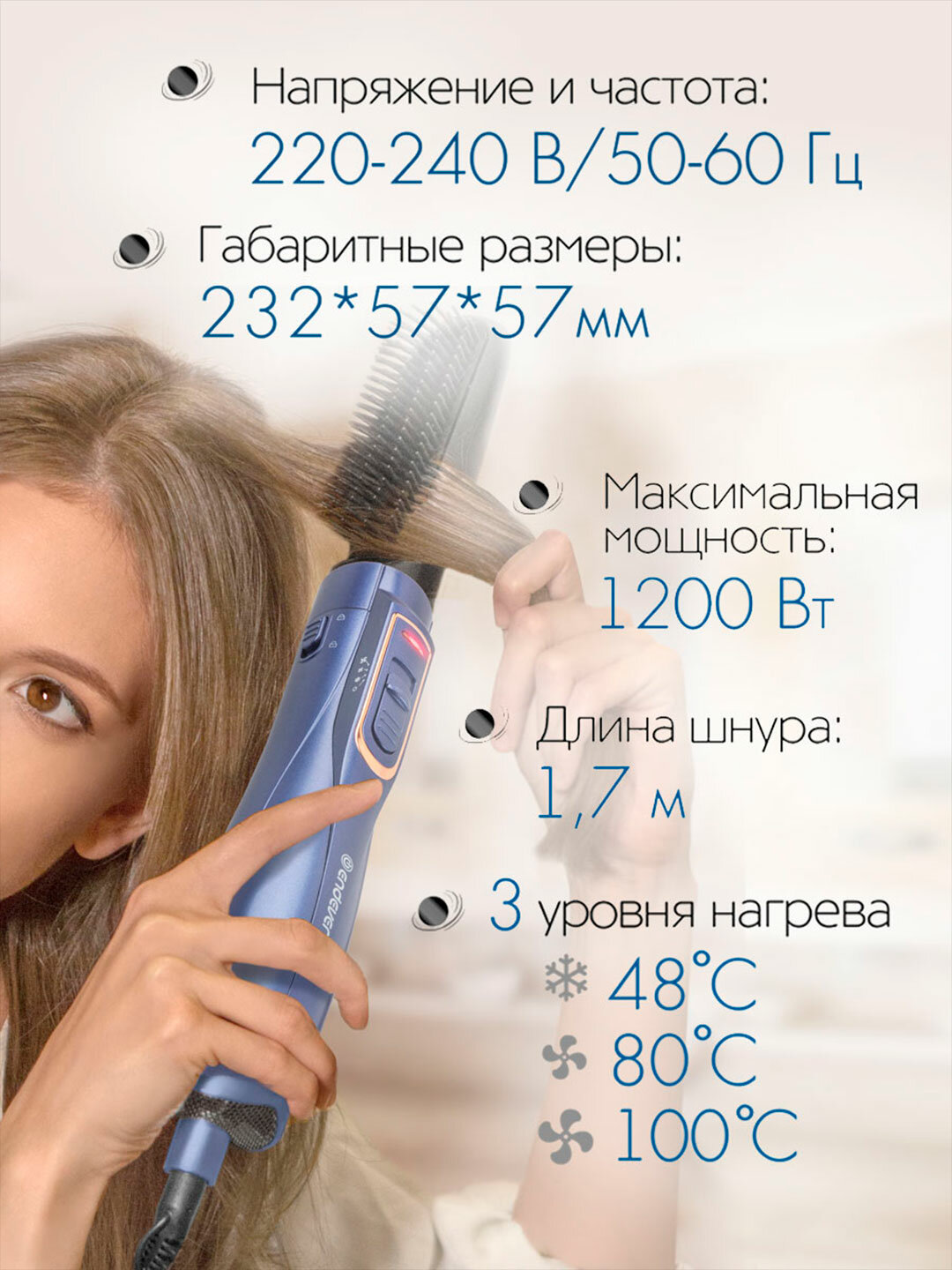 | Дополнительные функции | автоматическое вращение насадки, подача холодного воздуха |