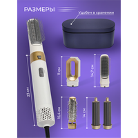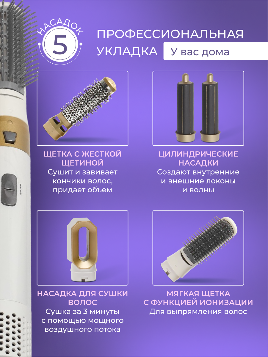 Стайлер для волос фен 5в1 с кейсом, плойка, выпрямитель фен с насадками для волос, для укладки, фен стайлер белый золотой: сравнение цен, характеристики, фото, актуальное наличие и цены.