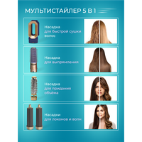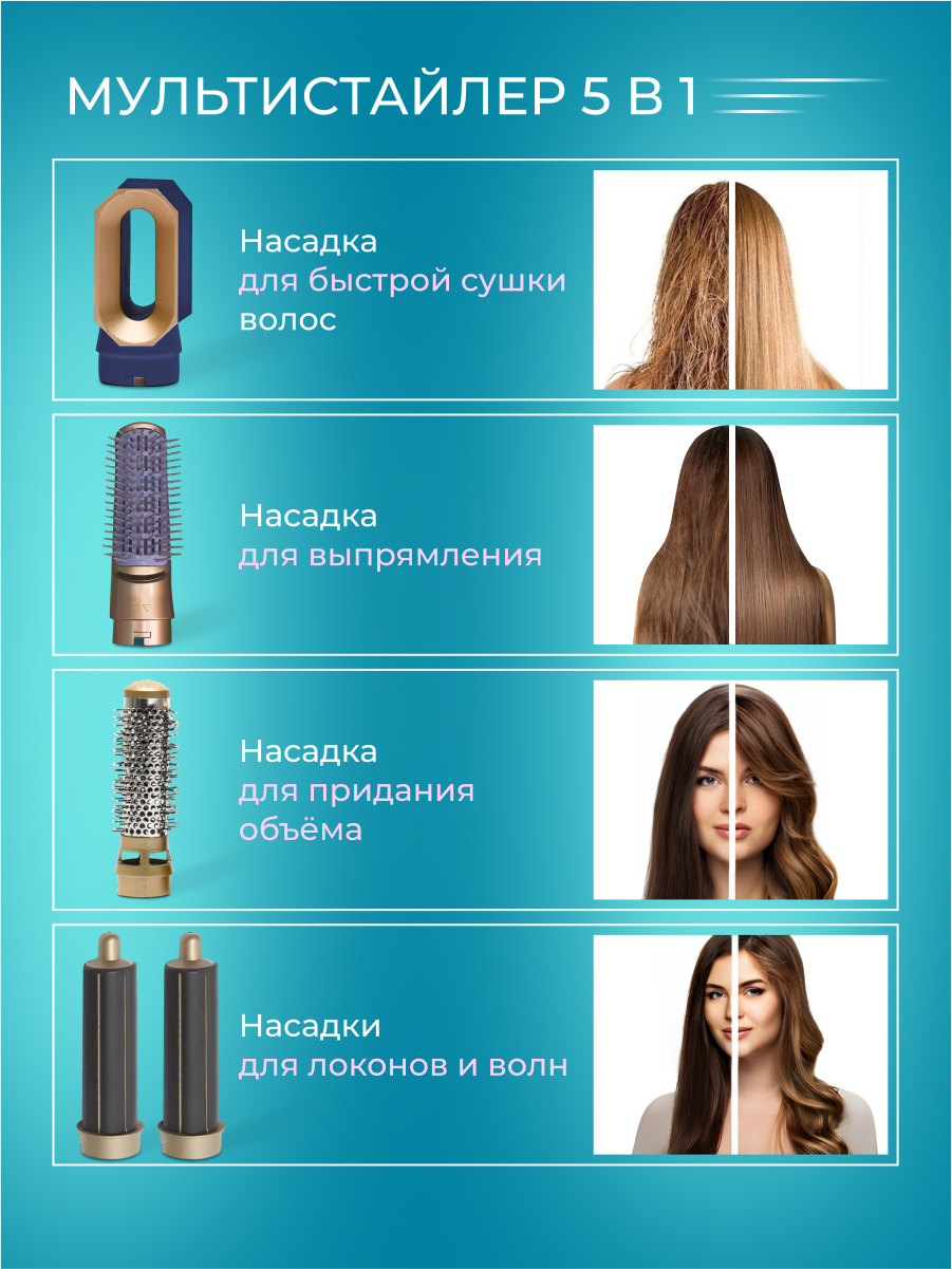 Стайлер для волос фен 5в1 с кейсом, плойка, выпрямитель фен с насадками для волос, для укладки, фен стайлер сине золотой: сравнение цен, характеристики, фото, актуальное наличие и цены.
