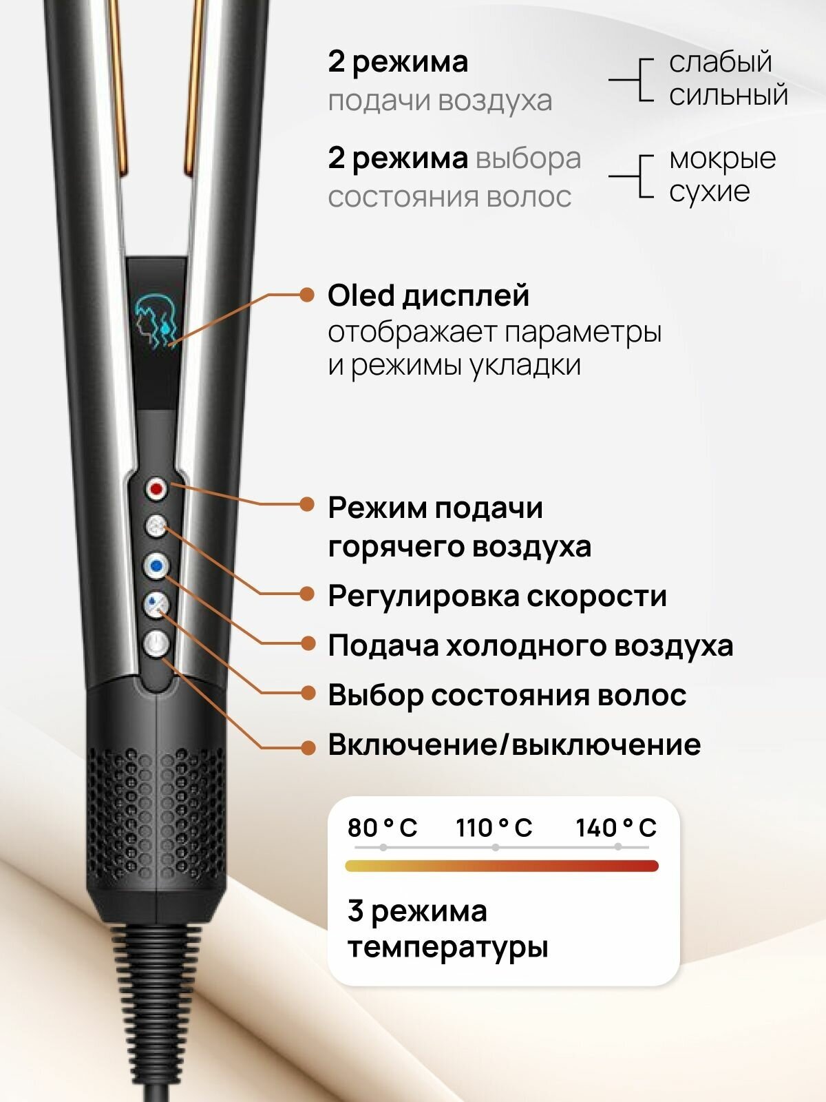 Купить Стайлер для волос, фен выпрямитель для волос с дисплеем, плойка для волос, серый с доставкой по всей России.