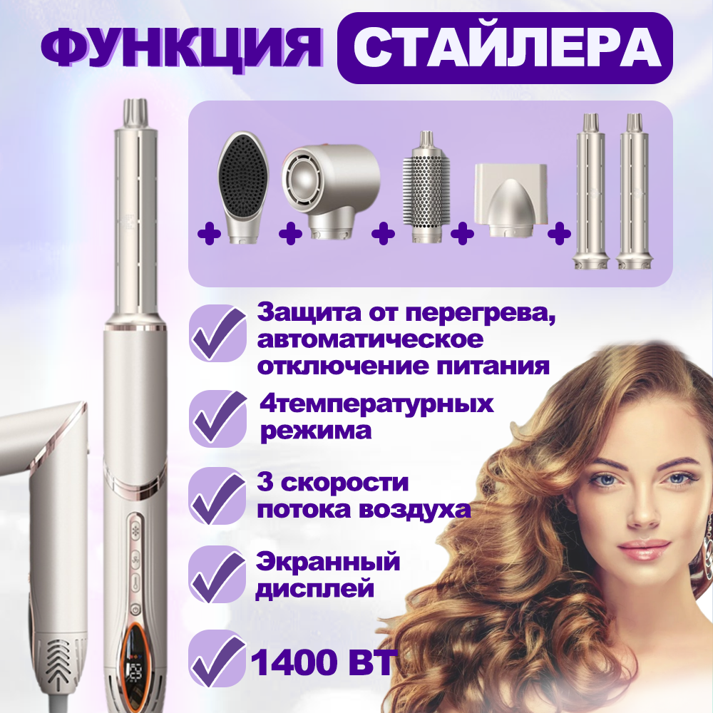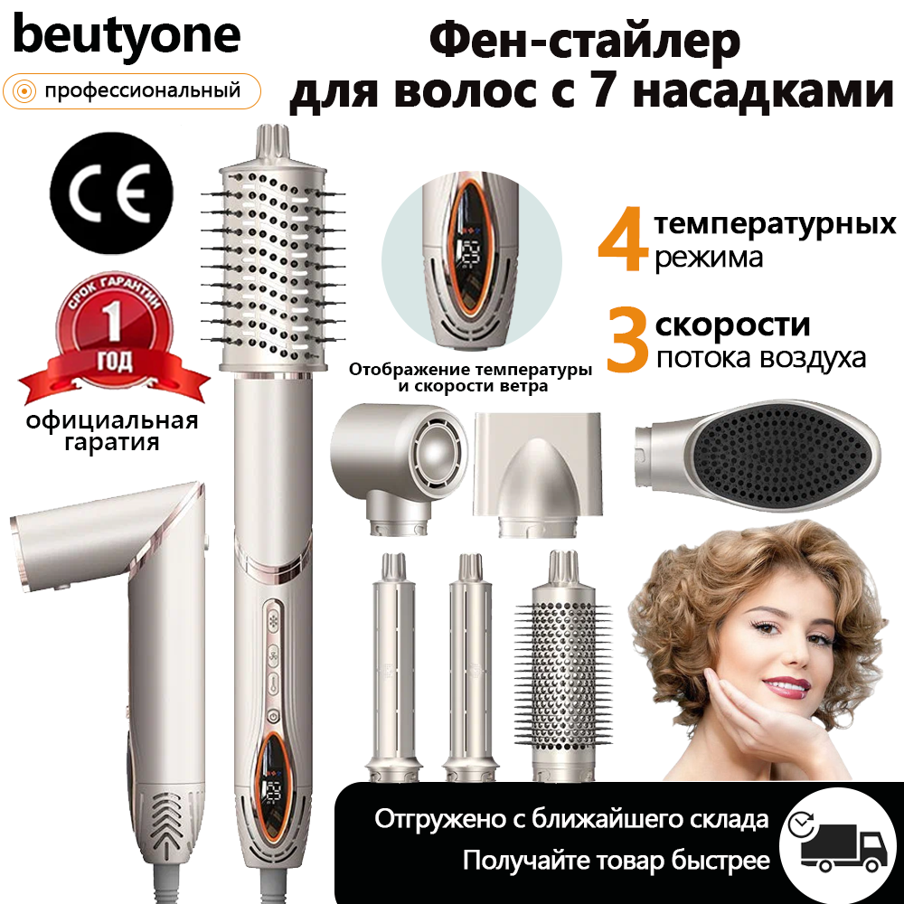 Купить Стайлер для волос профессиональный, фен стайлер для волос с дисплеем, с 7 насадками, c ионизацией для укладки beutyone с доставкой по всей России.