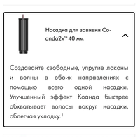 | Насадки | диффузор, для бережного высушивания, для выпрямления, для спиральной укладки, концентратор, расческа, цилиндрическая, щетка |