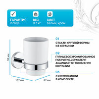 Остальные характеристики Дизайн: Модерн Форма: Круглая Цвет: Белый / Хром Название цвета: Белый / Хром Поворотная конструкция: Нет Страна-производитель: Германия / Китай Гарантия производителя: 2 года Вес в упаковке, кг: 0,4 Объём упаковки, м3: 0,003 Размер упаковки ДxШxВ, см: 23 x 11,5 x 10,5 Стакан Allen Brau Priority 6.31002-00 - интересный экземпляр для создания настроения в помещении, предназначенный для ванной комнаты. Устанавливается он на стену. Материал, который использован для создания аксессуара - керамика, латунь. Такая удобная и функциональная деталь интерьера, выполненная в стиле модерн, станет интересным акцентом дизайна помещения. Производитель изделия Allen Brau установил на него гарантию 2 года.