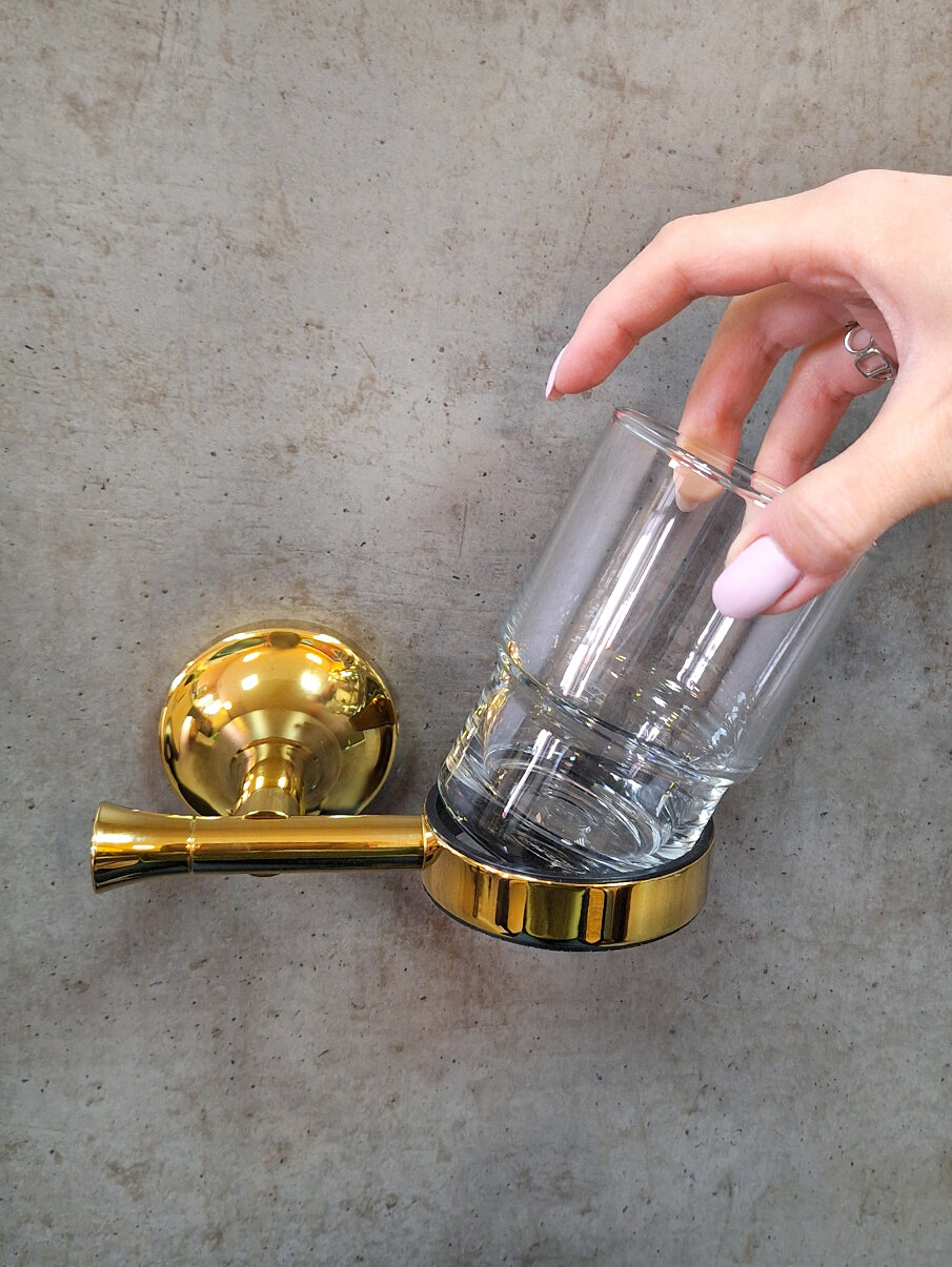 Стакан для зубных щеток настенный, держатель латнь золото / стекло