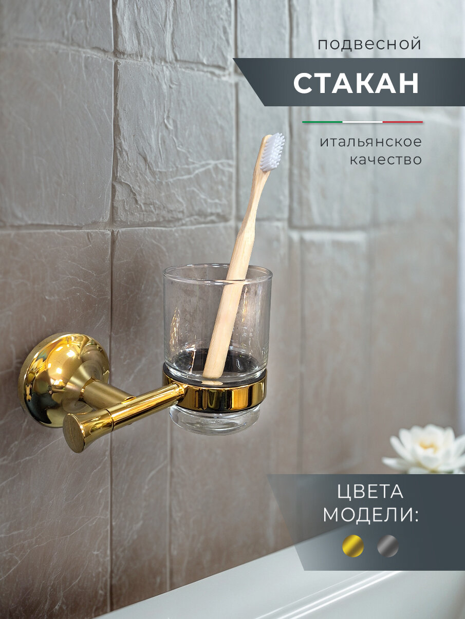 Купить Стакан для зубных щеток настенный, держатель латнь золото / стекло с доставкой по всей России.