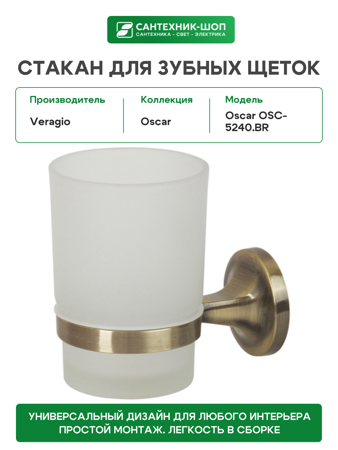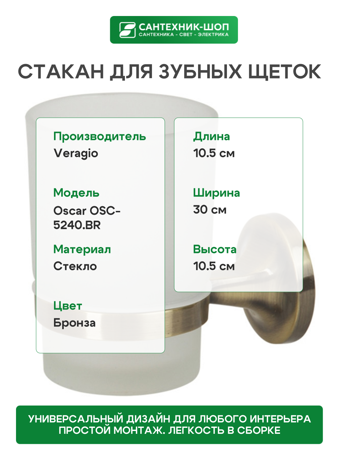 Купить Стакан для зубных щеток Veragio Oscar OSC-5240. BR Бронза стекло на стену с доставкой по всей России. Стакан для зубных щеток Veragio Oscar OSC-5240. BR Бронза стекло на стену: сравнение цен, характеристики, фото, актуальное наличие и цены.