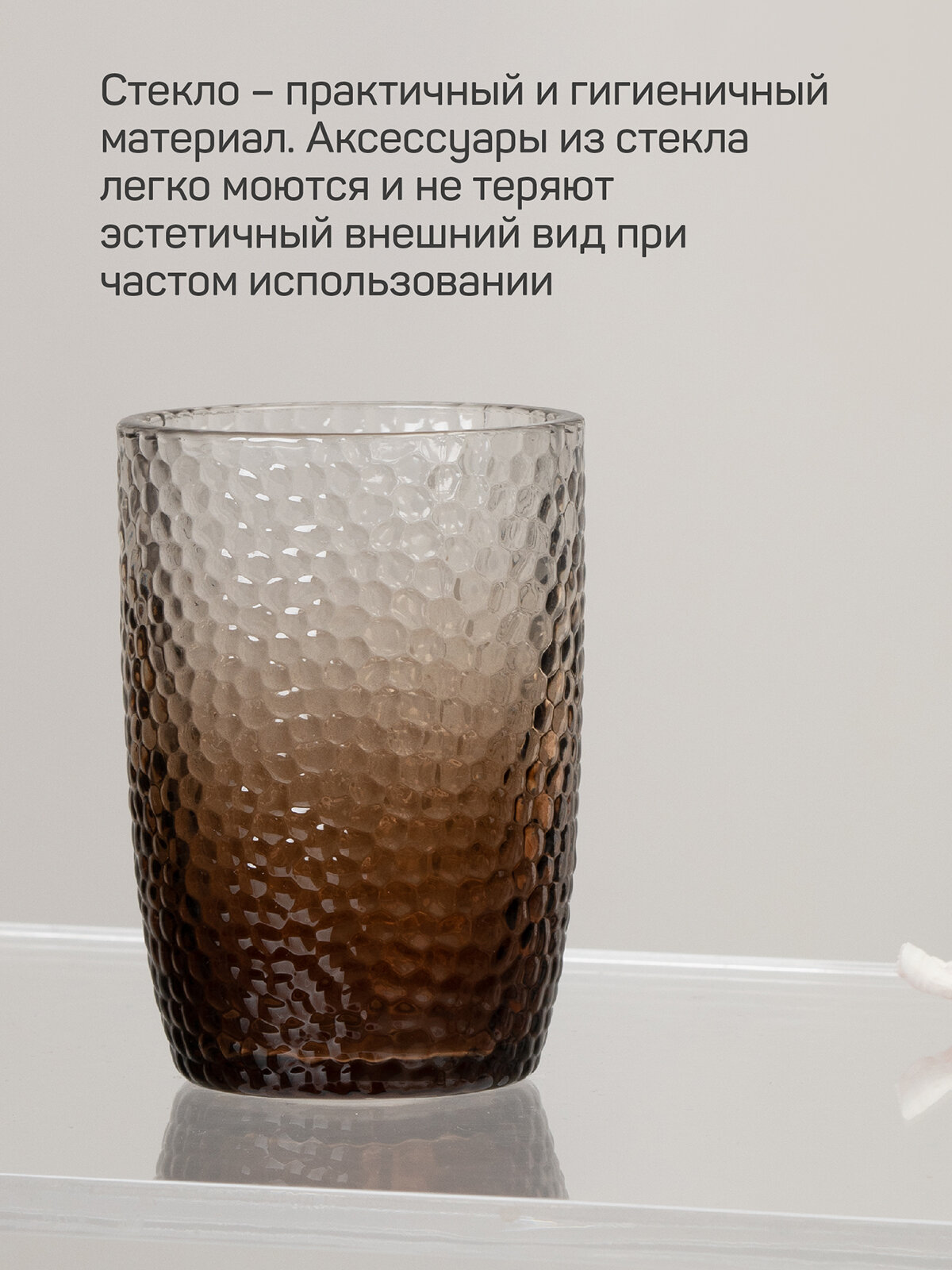 Стакан для зубных щеток из коллекции VINTAGE выполнен из прозрачного коричневого стекла повышенной прочности с рельефным рисунком.