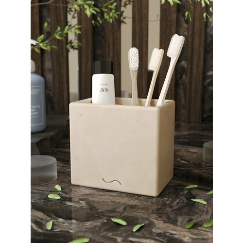 Cтакан для зубных щёток Emily Duo - это стильный интерьерный аксессуар, изготовленный вручную из архитектурного бетона и покрытый защитным лаком, который не только защищает поверхность от воздействия влаги и грязи, но и придаёт ей необычную текстуру. Благодаря использованию такого покрытия, органайзер для зубных щёток можно без опасений использовать в ванной комнате.