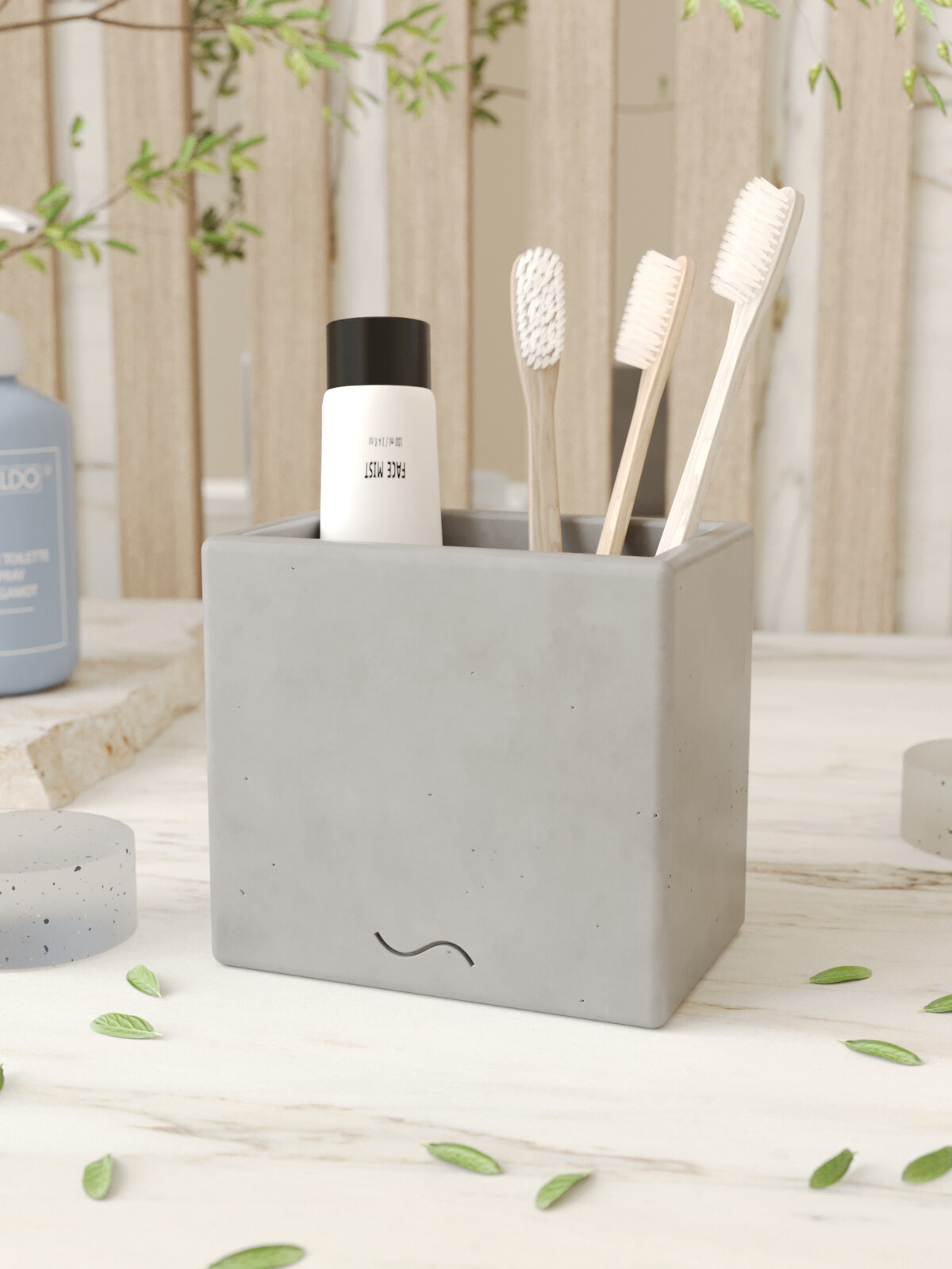 Купить Стакан для зубных щёток, стакан для ванной Emily Duo 12х8х11, бетон, серый глянцевый с доставкой по всей России.