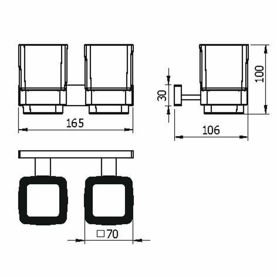 Для аккуратного хранения средств гигиены и косметики можноостановить выбор на комплекте Langberger Alster 11919A. На латунномдержателе размещаются два стакана лаконичной кубической формы, которые легко извлекаются для очистки. В сочетании с блестящейхромированной поверхностью матовое стекло выглядит презентабельно. Крепления для подвешивания входят в комплект.