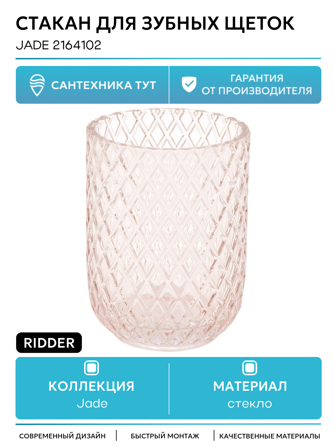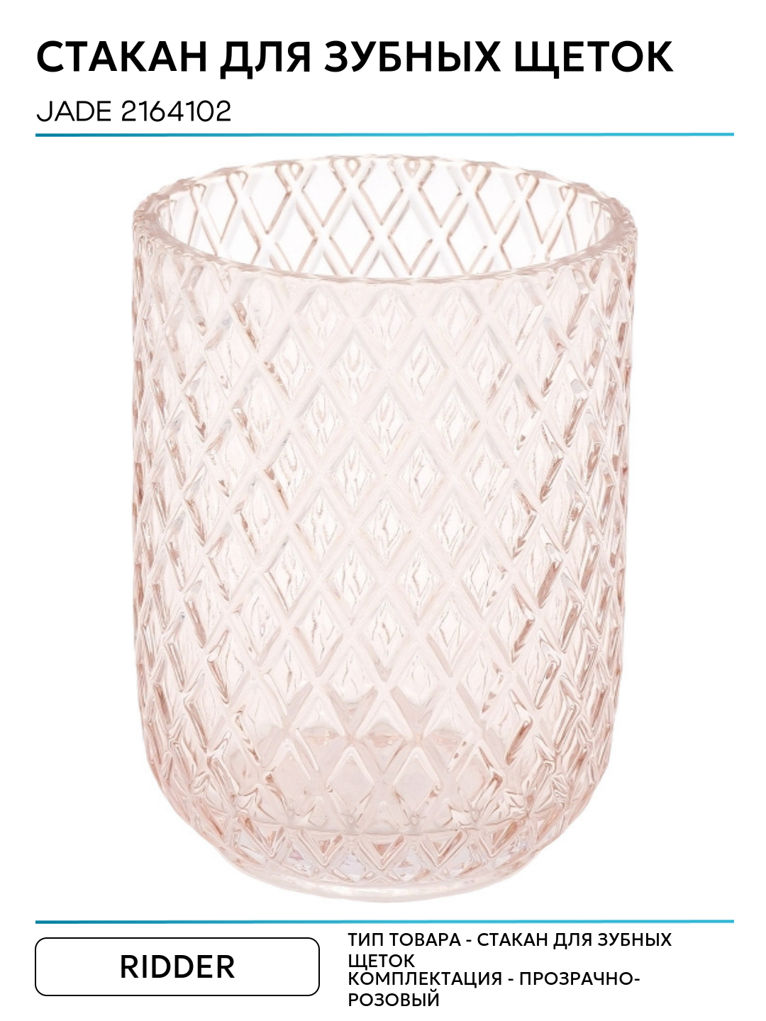 Стакан для зубных щеток Ridder Jade 2164102 прозрачно-розовый: сравнение цен, характеристики, фото, актуальное наличие и цены.