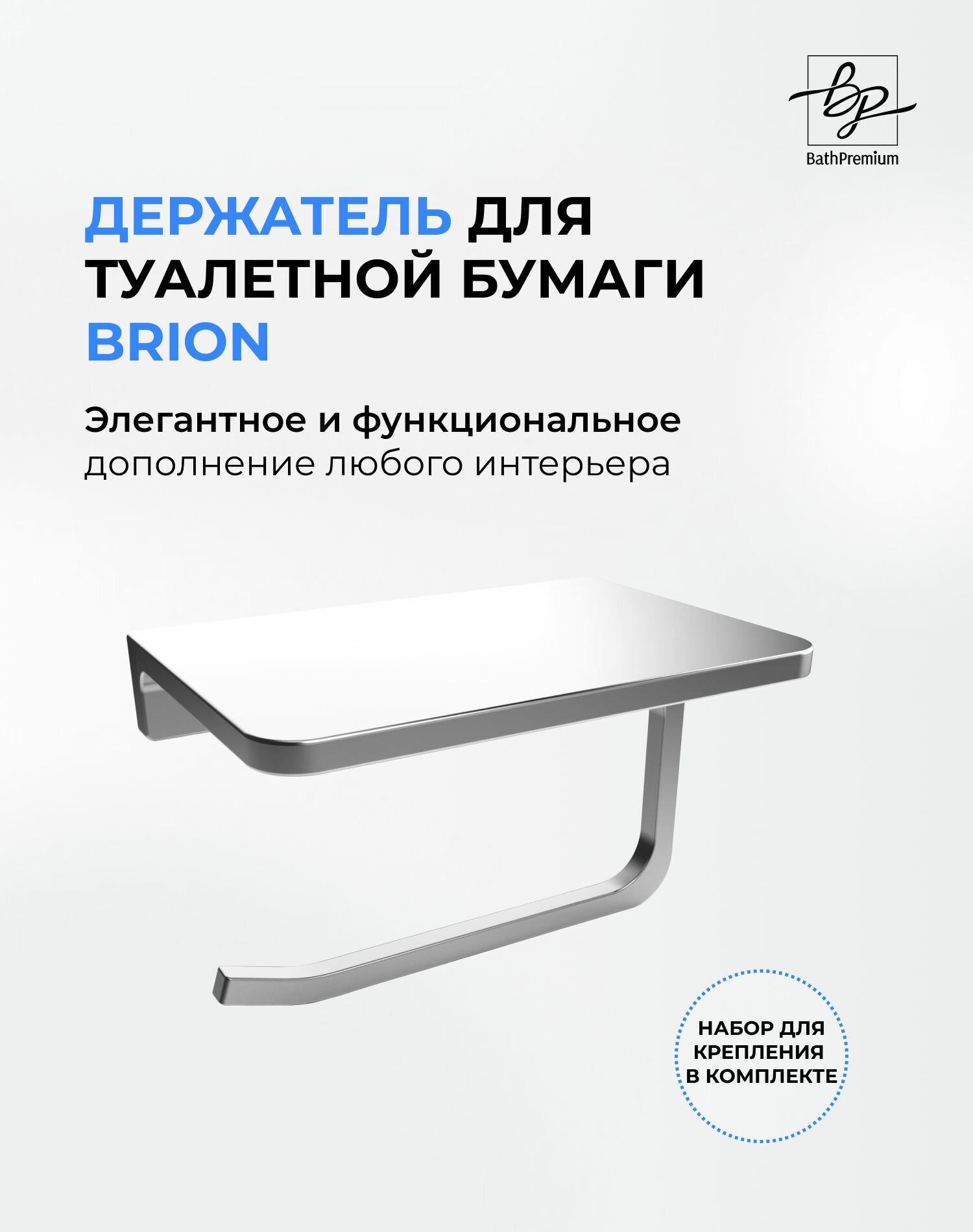 Стальной держатель для туалетной бумаги Brion с полочкой