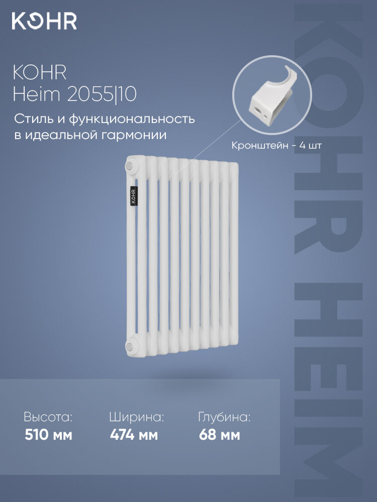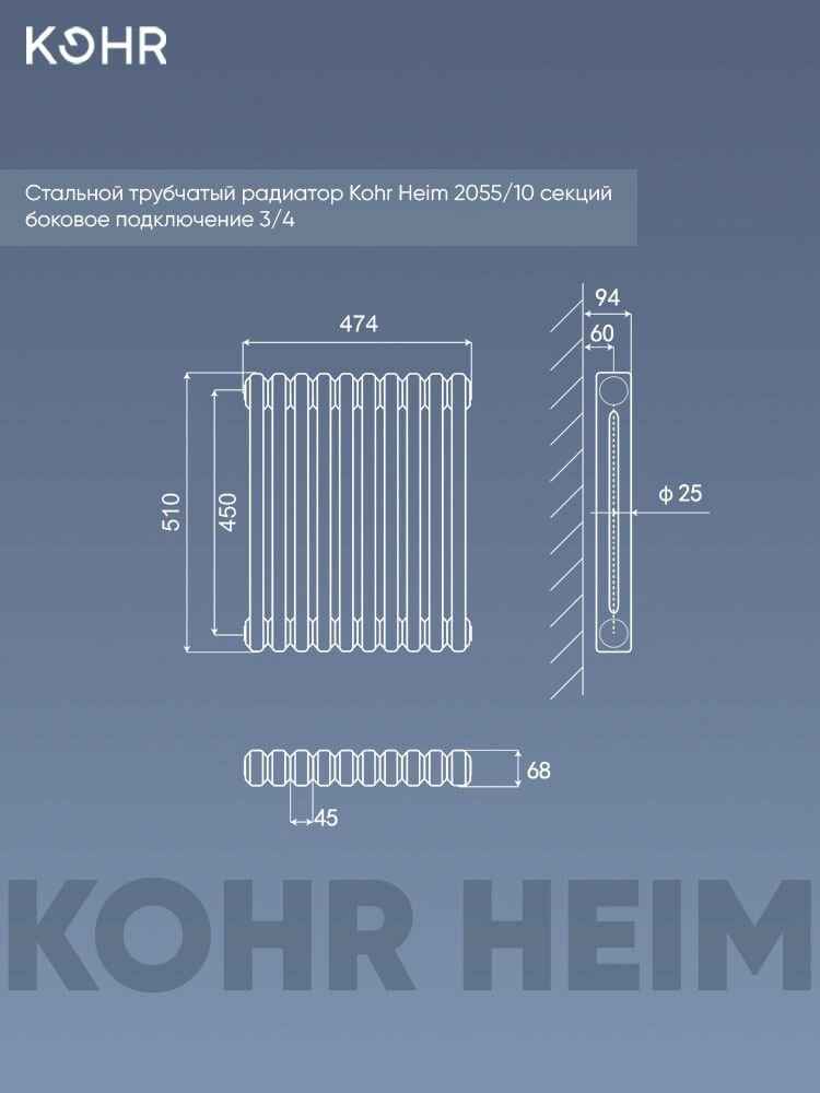 Стальной трубчатый радиатор Kohr Heim 2052/10 секций с боковым подключением 3/4: сравнение цен, характеристики, фото, актуальное наличие и цены.