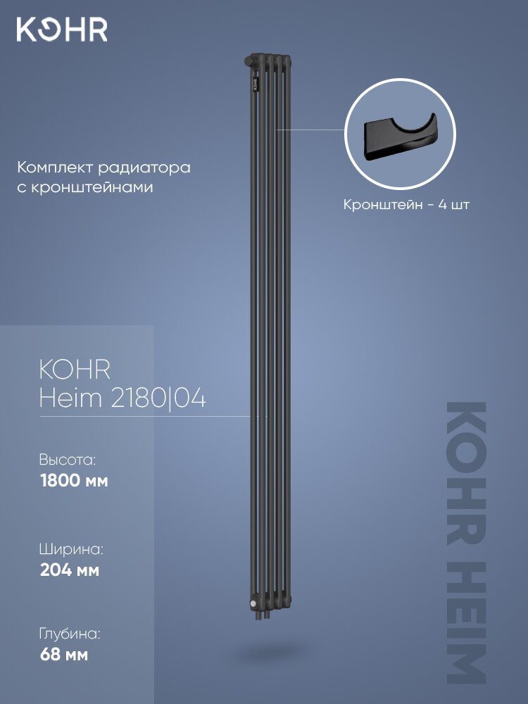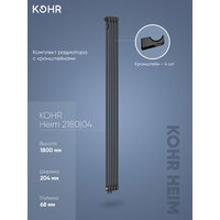 Купить Стальной трубчатый радиатор Kohr Heim 2180/04 секции H01 с нижним подключением черный с доставкой по всей России.