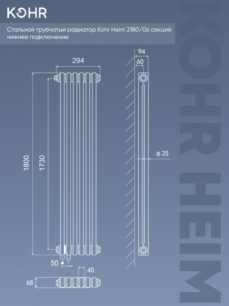 Стальной трубчатый радиатор Kohr Heim 2180/06 секций H01 с нижним подключением: сравнение цен, характеристики, фото, актуальное наличие и цены.