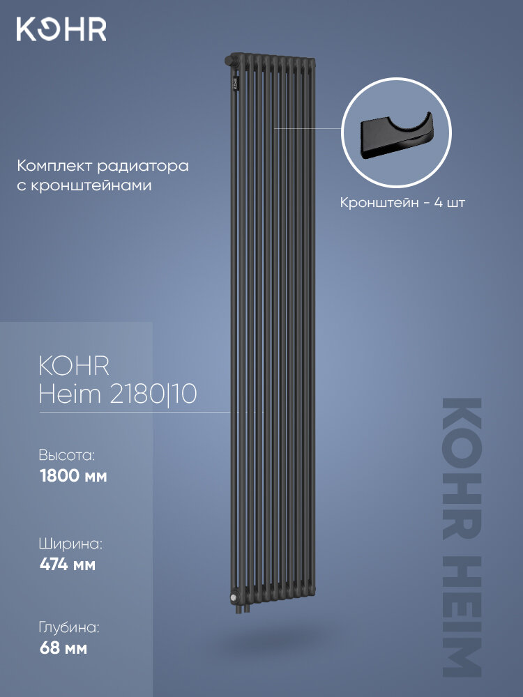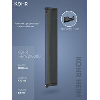 Купить Стальной трубчатый радиатор Kohr Heim 2180/10 секций H01 с нижним подключением черный с доставкой по всей России.