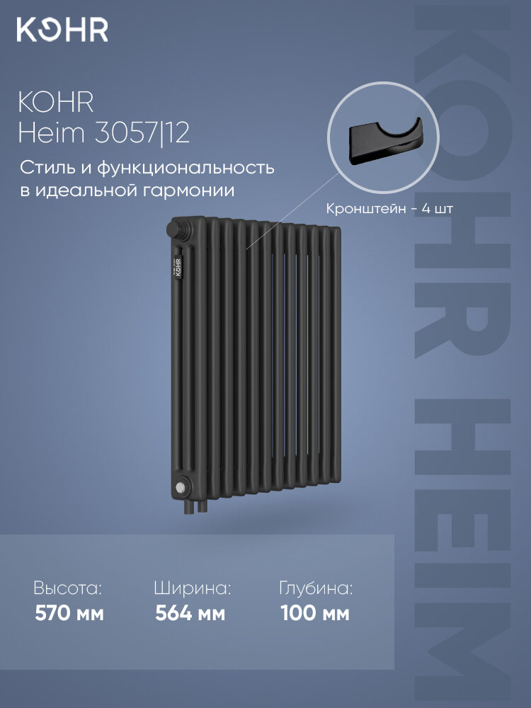 Купить Радиатор Kohr Heim 3057/12 секций H01 с нижним подключением черный с доставкой по всей России.