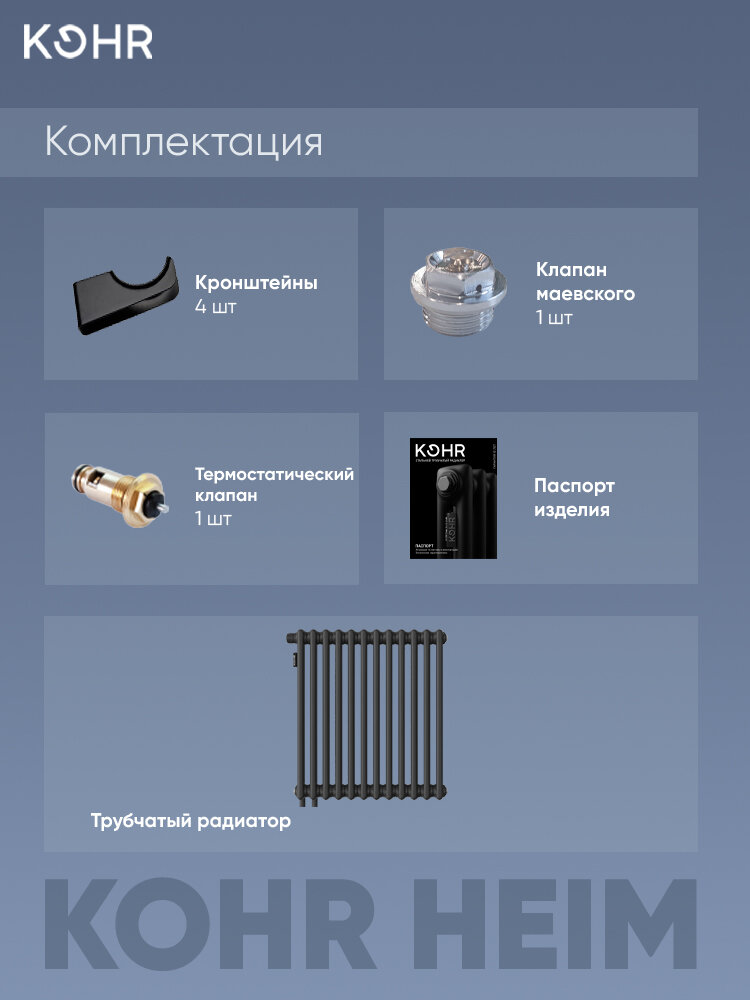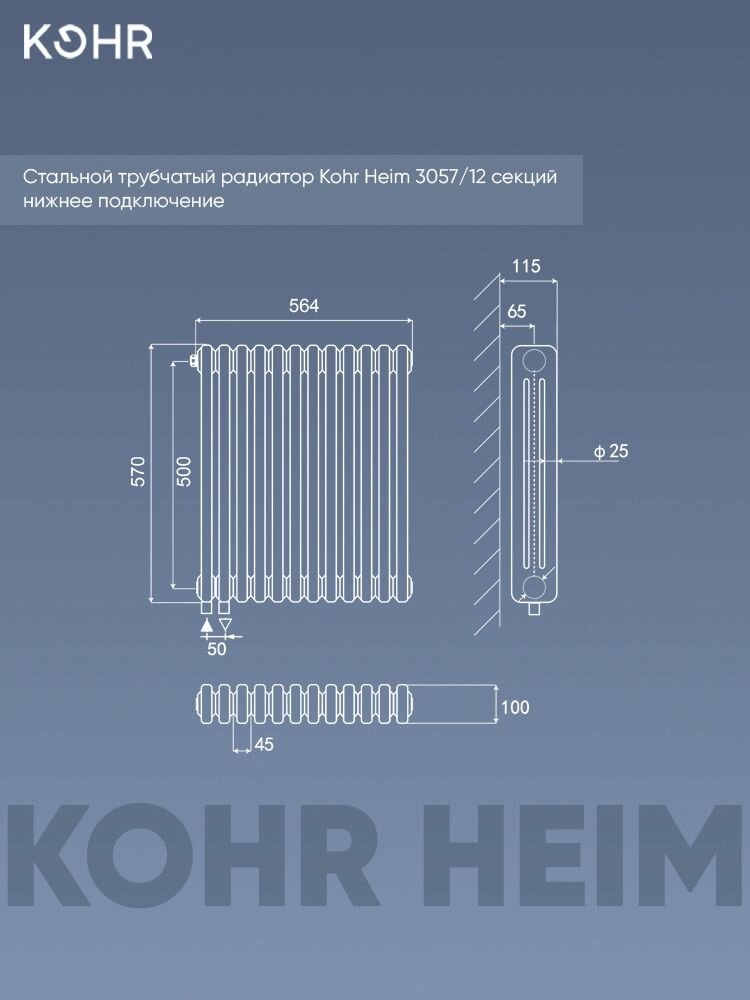 Радиатор Kohr Heim 3057/12 секций H01 с нижним подключением черный: сравнение цен, характеристики, фото, актуальное наличие и цены.