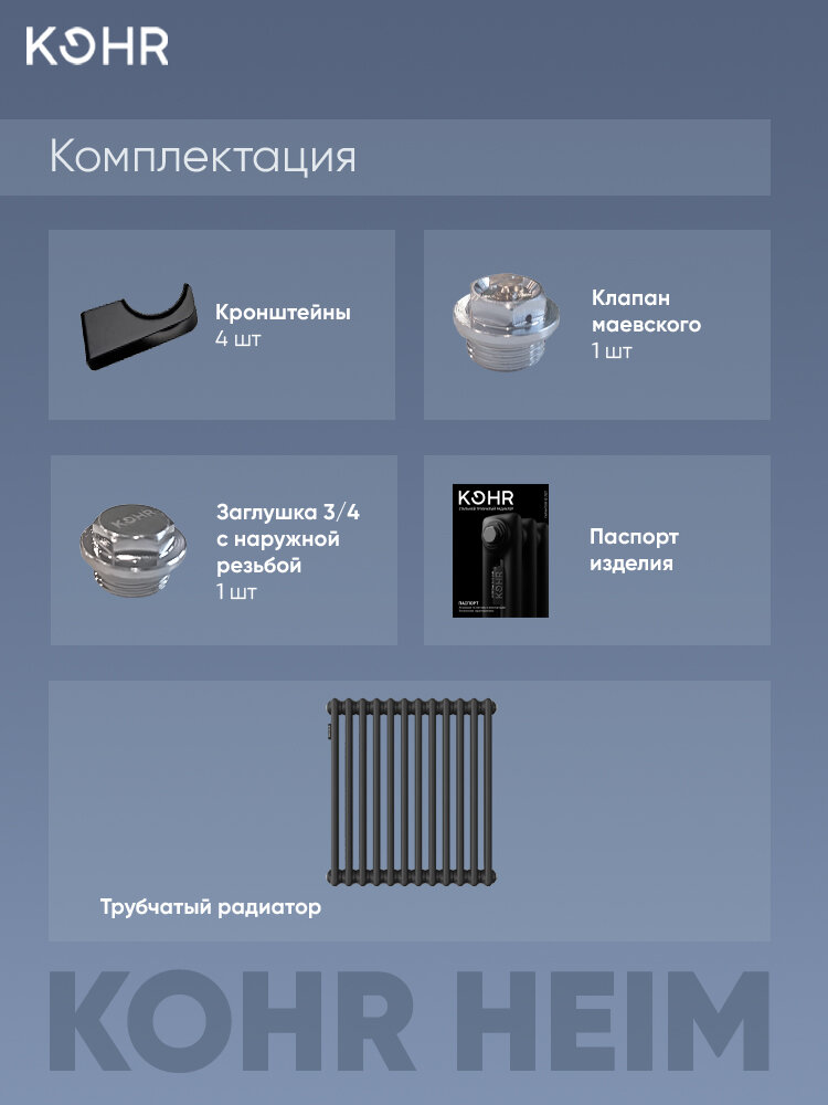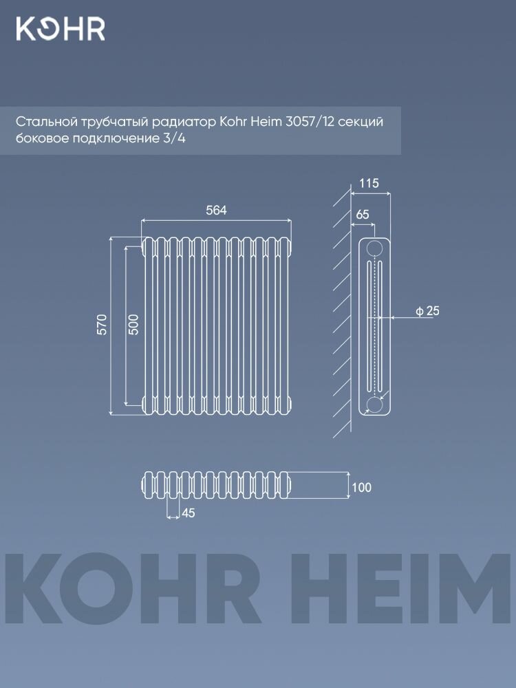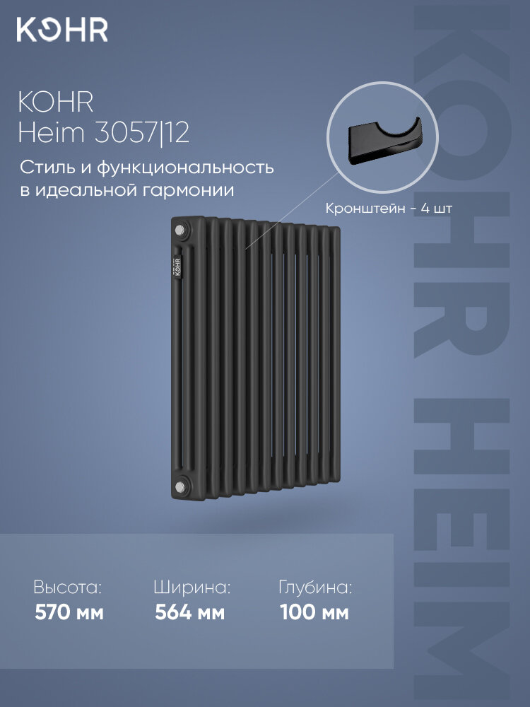 Стальной трубчатый радиатор Kohr Heim 3057/12 секций с боковым подключением 3/4 черный: сравнение цен, характеристики, фото, актуальное наличие и цены.