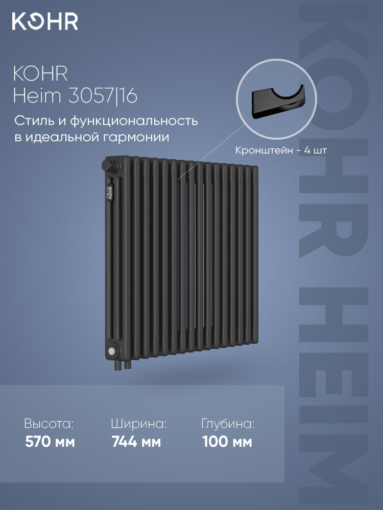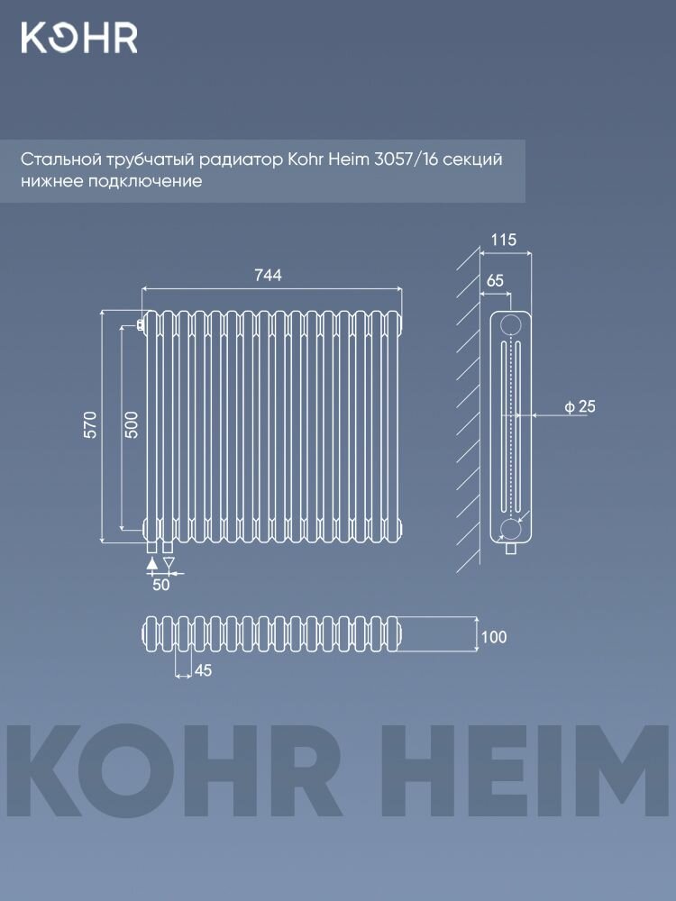 Стальной трубчатый радиатор Kohr Heim 3057/16 секций H01 с нижним подключением черный: сравнение цен, характеристики, фото, актуальное наличие и цены.