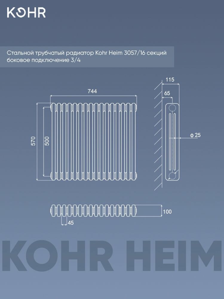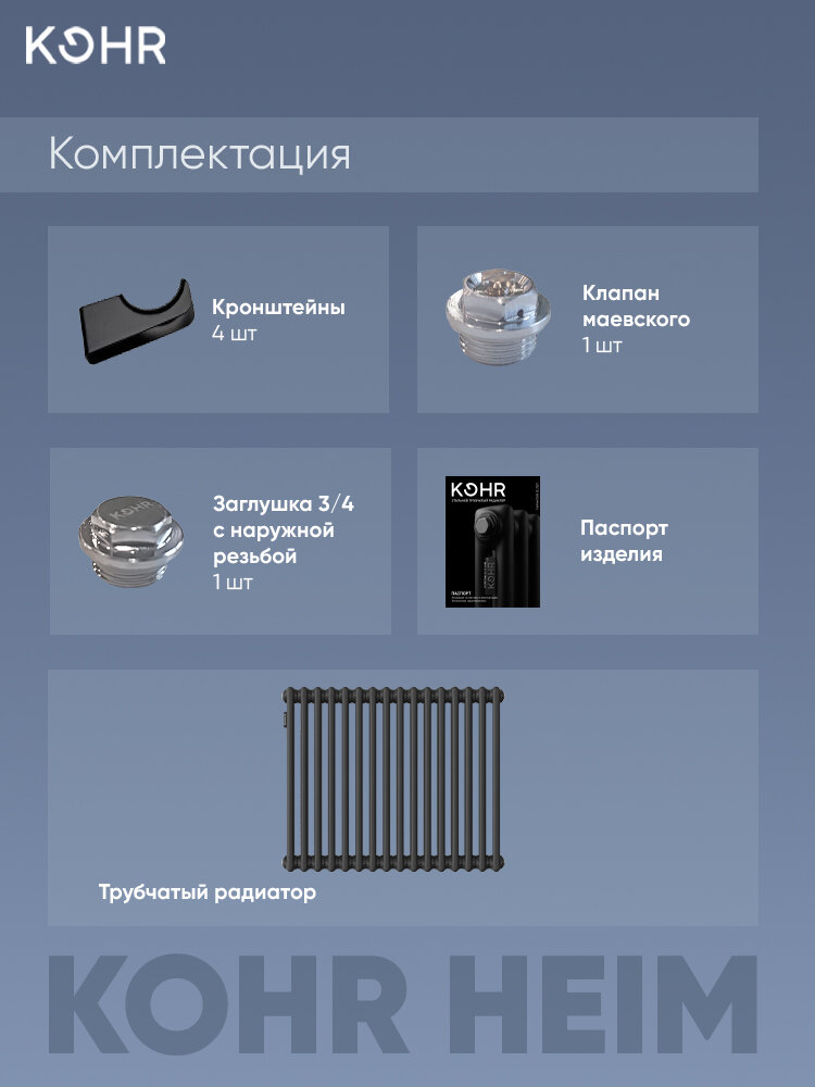 Стальной трубчатый радиатор Kohr Heim 3057/16 секций с боковым подключением 3/4 черный: сравнение цен, характеристики, фото, актуальное наличие и цены.