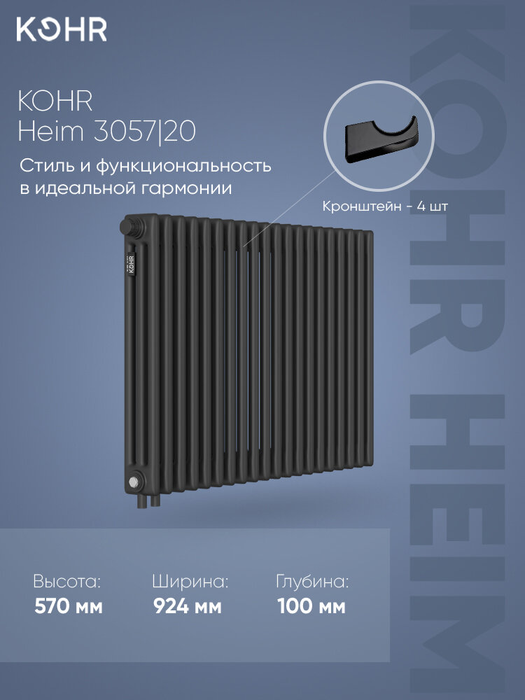 Стальной трубчатый радиатор Kohr Heim 3057/20 секций H01 с нижним подключением черный: сравнение цен, характеристики, фото, актуальное наличие и цены.