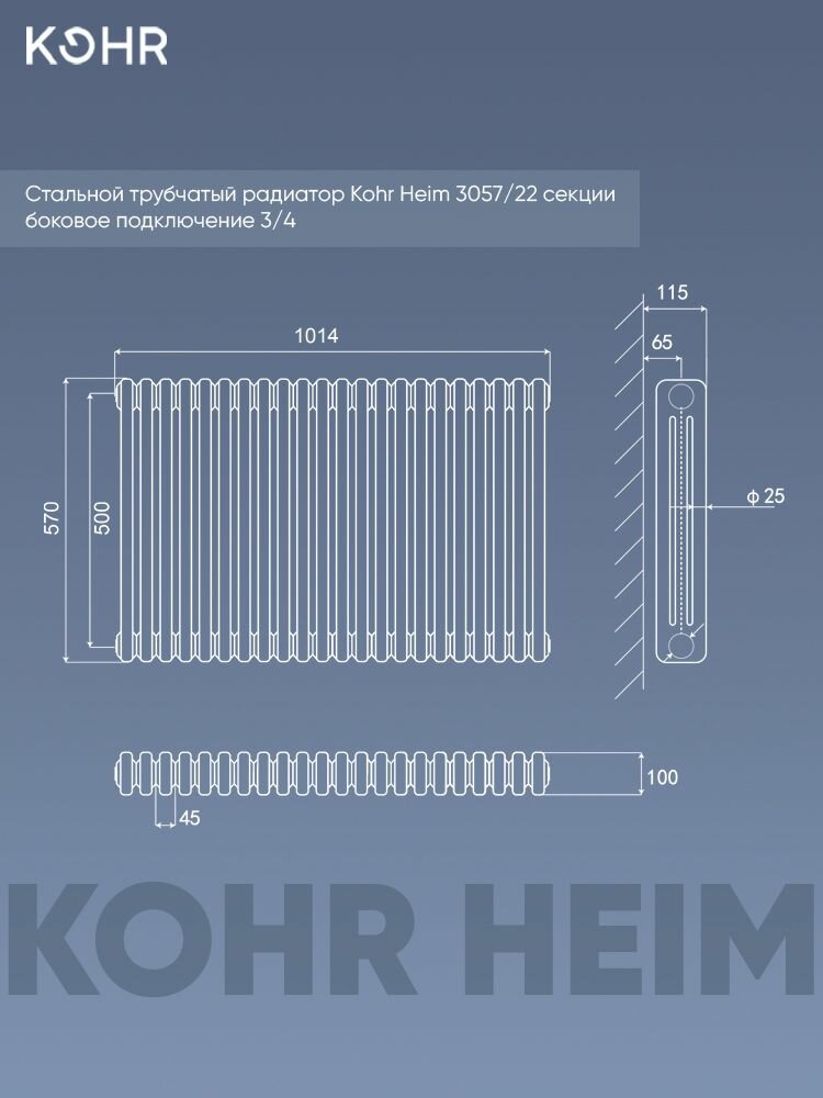 Стальной трубчатый радиатор Kohr Heim 3057/22 секции с боковым подключением 3/4 черный: сравнение цен, характеристики, фото, актуальное наличие и цены.