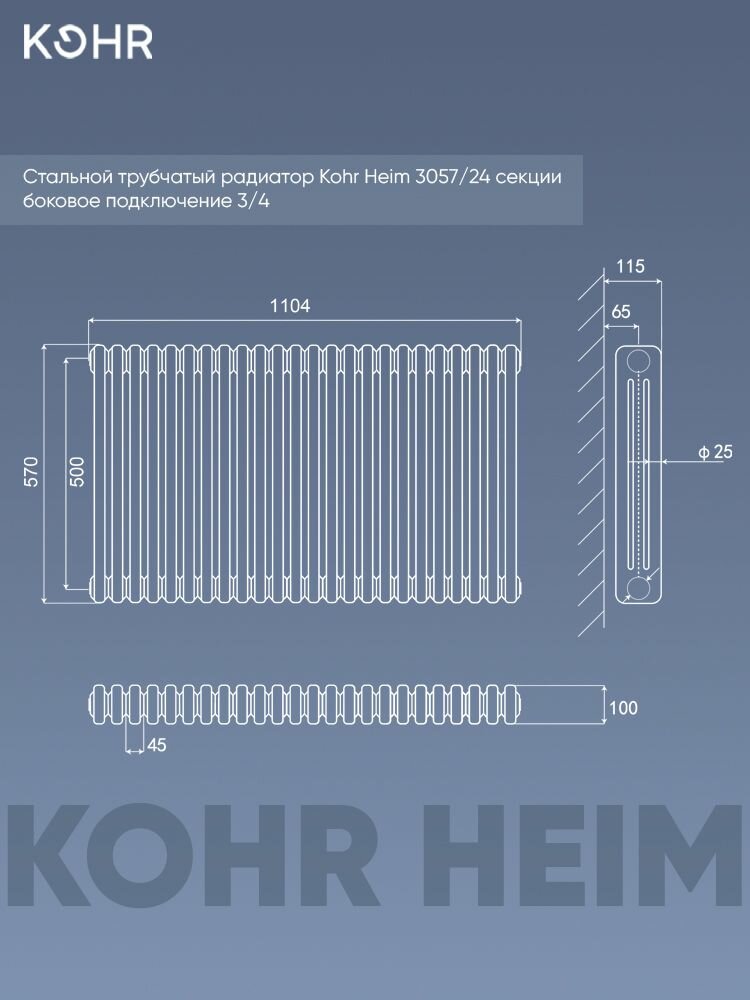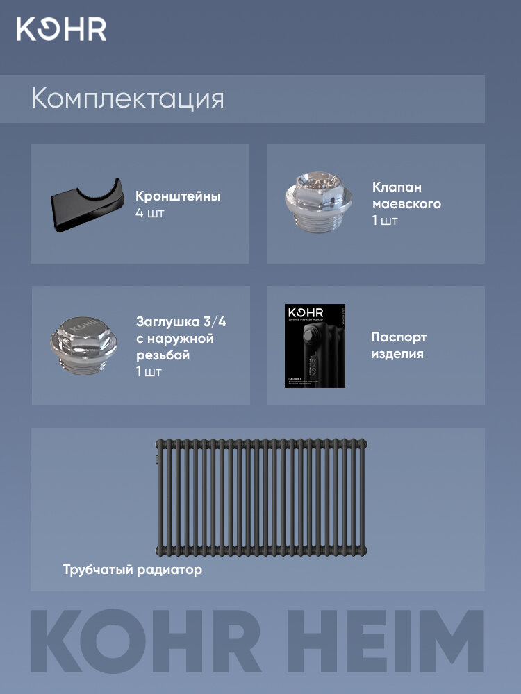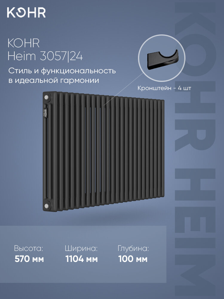 Стальной трубчатый радиатор Kohr Heim 3057/24 секции с боковым подключением 3/4 черный: сравнение цен, характеристики, фото, актуальное наличие и цены.