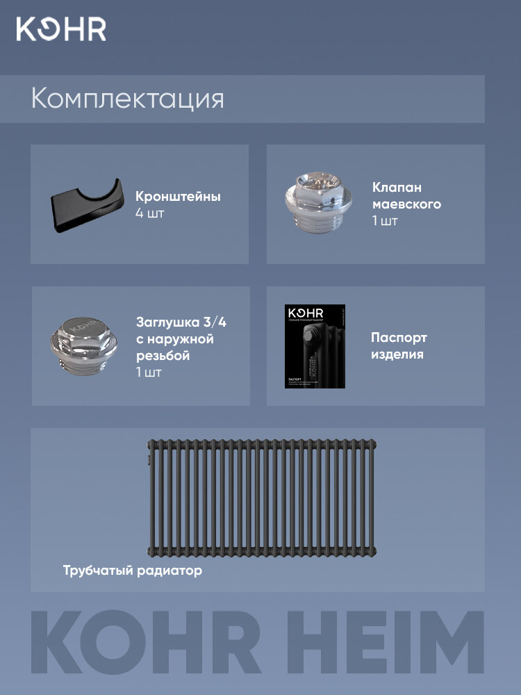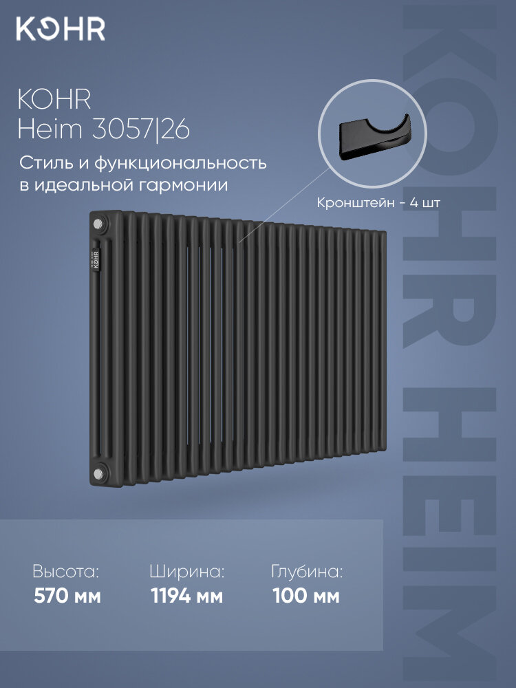 Стальной трубчатый радиатор Kohr Heim 3057/26 секций с боковым подключением 3/4 черный: сравнение цен, характеристики, фото, актуальное наличие и цены.