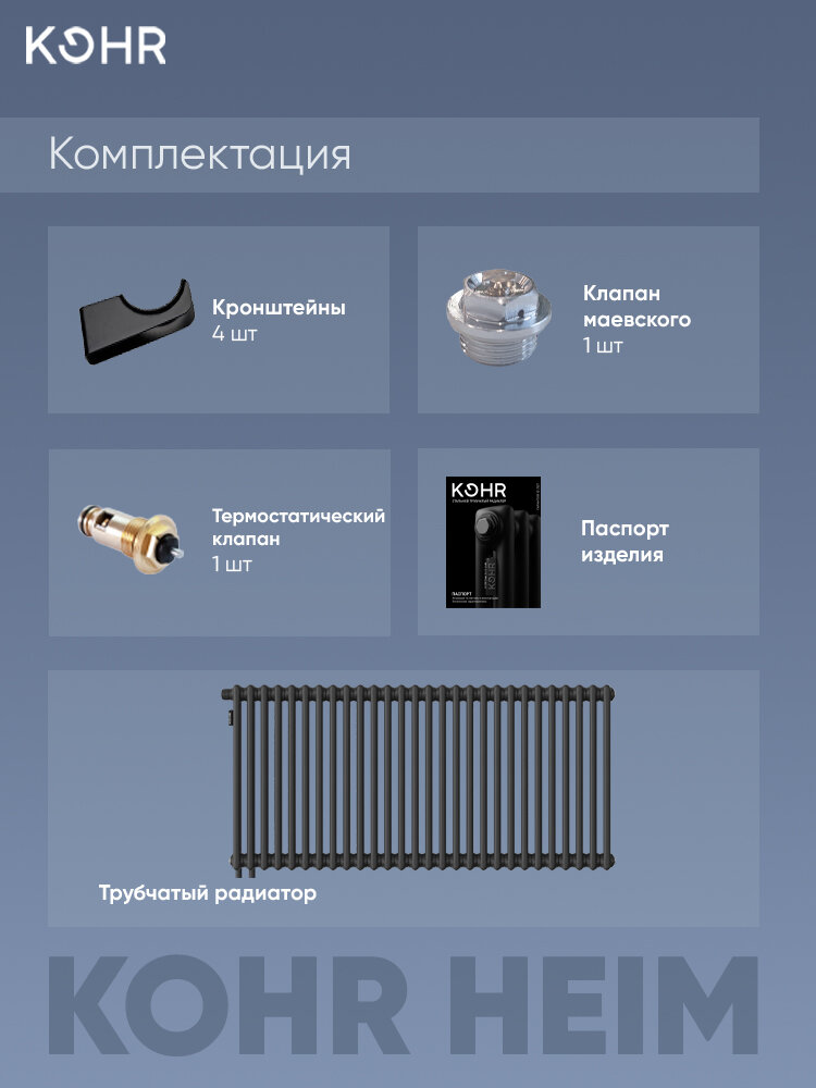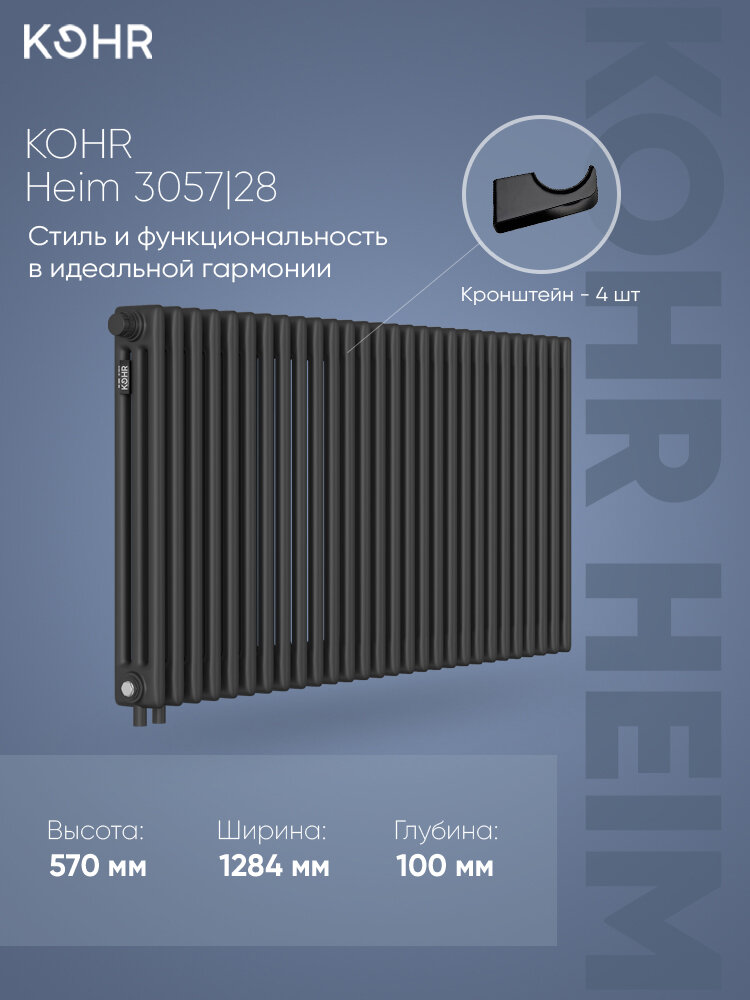 Стальной трубчатый радиатор Kohr Heim 3057/28 секций H01 с нижним подключением черный: сравнение цен, характеристики, фото, актуальное наличие и цены.