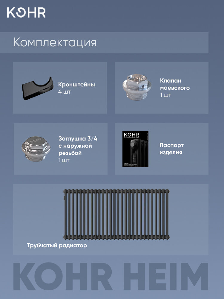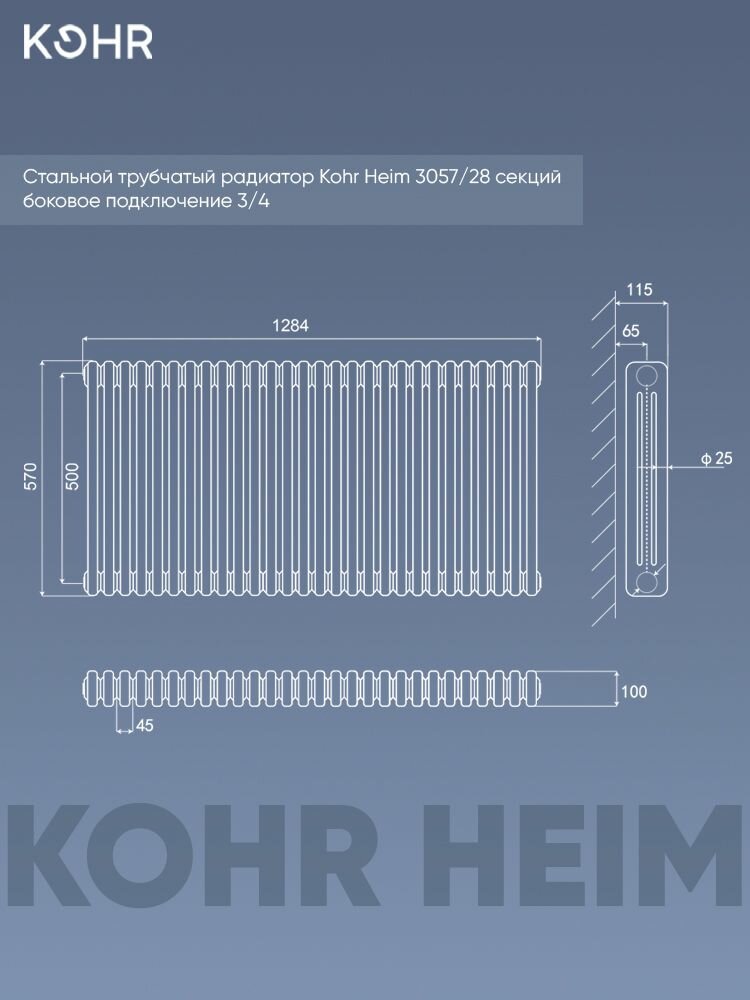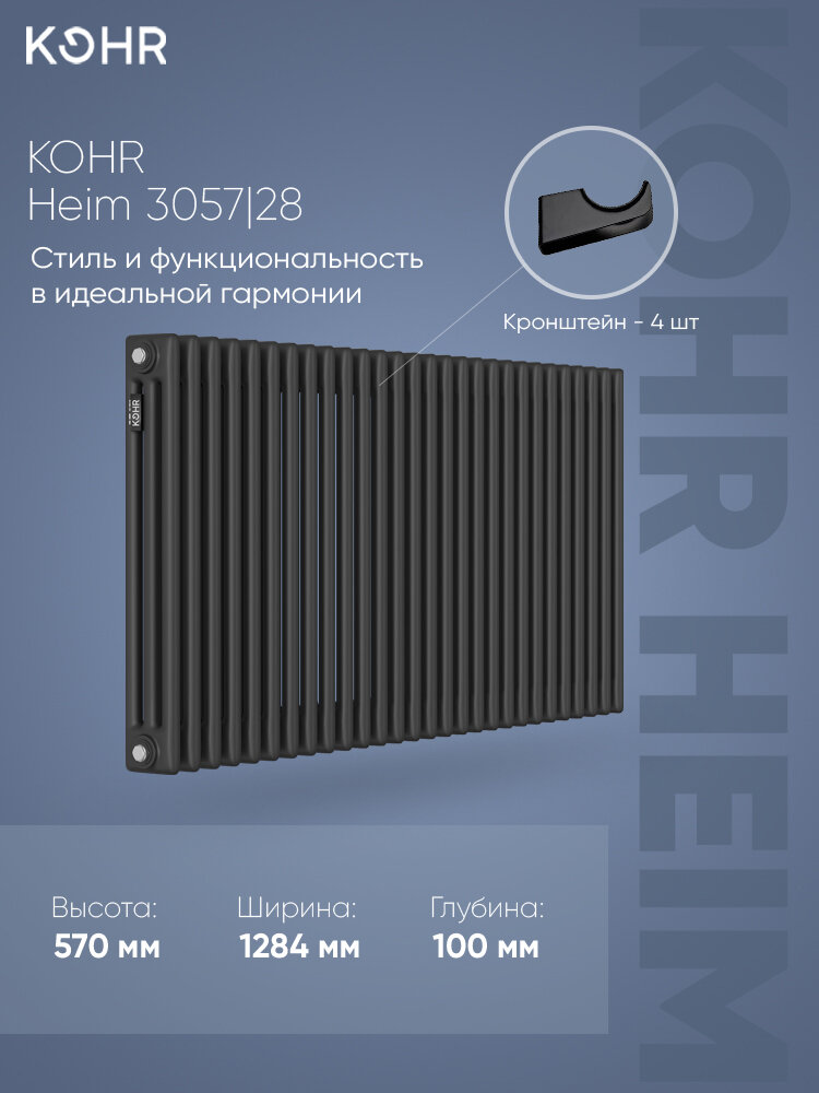 Стальной трубчатый радиатор Kohr Heim 3057/28 секций с боковым подключением 3/4 черный: сравнение цен, характеристики, фото, актуальное наличие и цены.