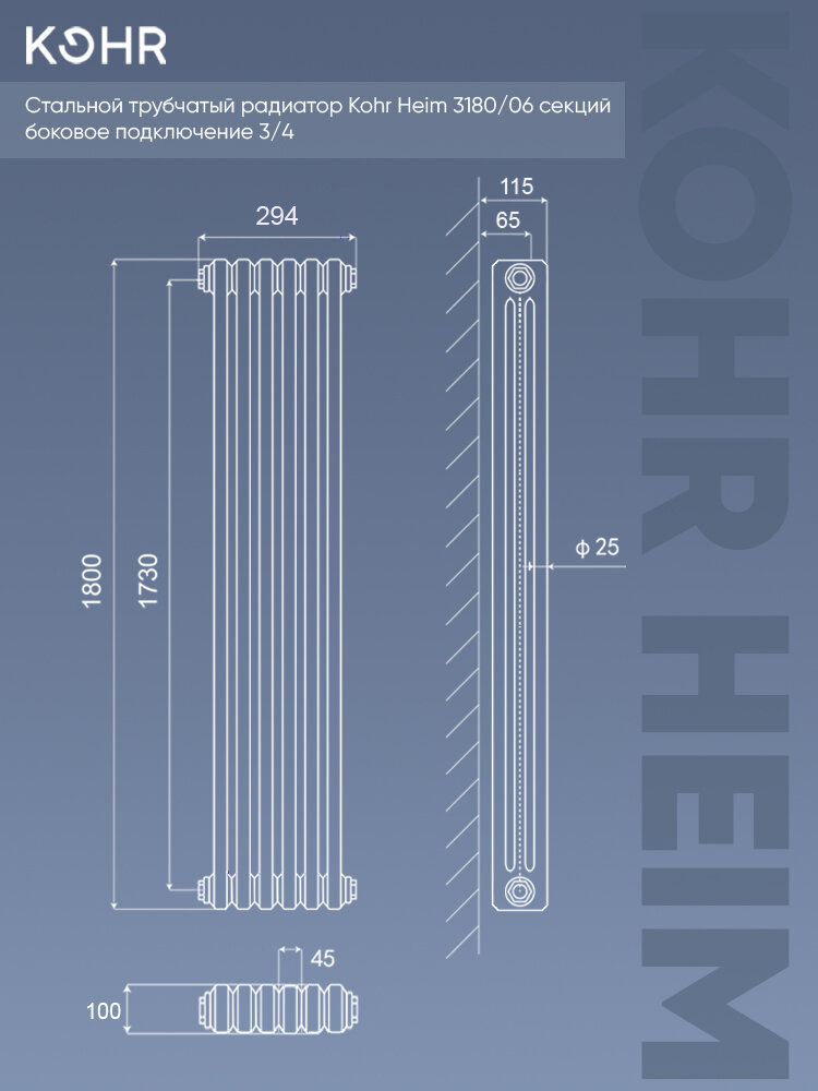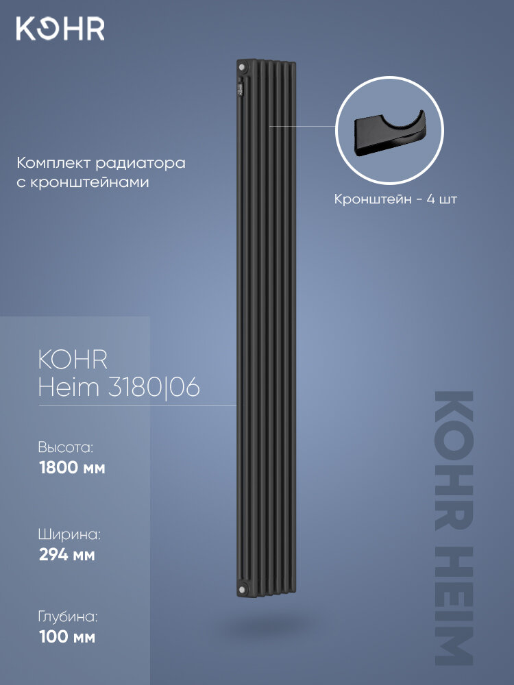 Стальной трубчатый радиатор Kohr Heim 3180/06 секций с боковым подключением 3/4 черный: сравнение цен, характеристики, фото, актуальное наличие и цены.