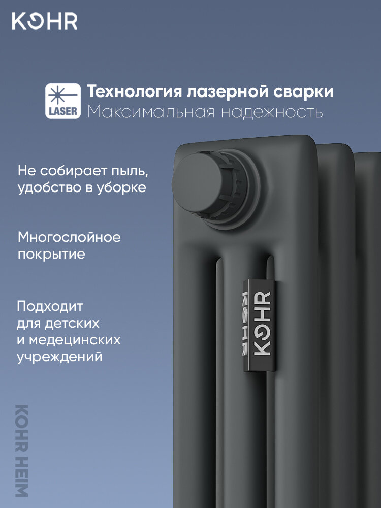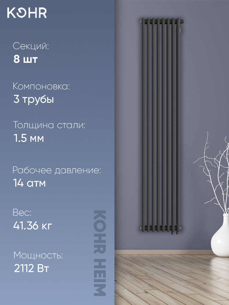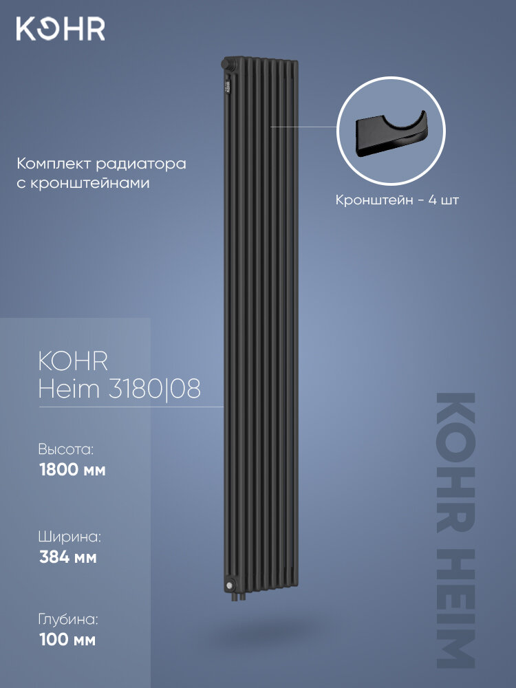 Стальной трубчатый радиатор Kohr Heim 3180/08 секций H01 с нижним подключением черный: сравнение цен, характеристики, фото, актуальное наличие и цены.