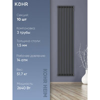 Купить Стальной трубчатый радиатор Kohr Heim 3180/10 секций с боковым подключением 3/4 черный с доставкой по всей России.