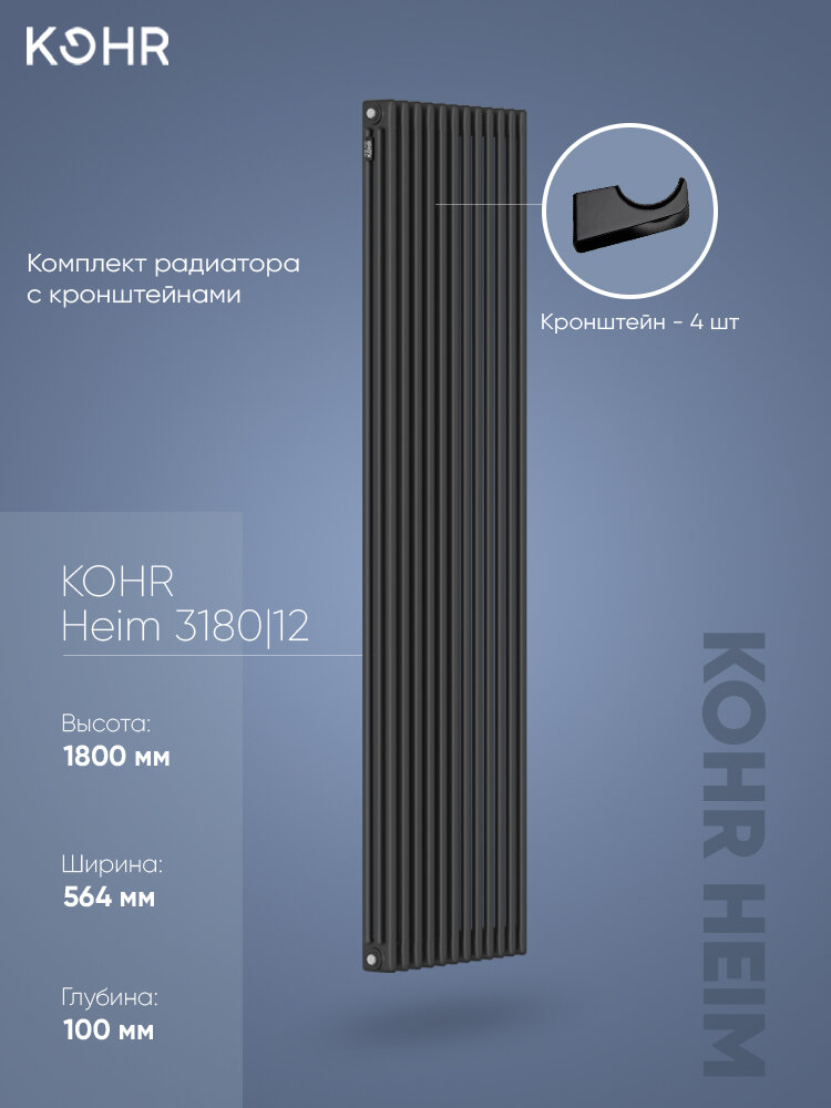 Стальной трубчатый радиатор Kohr Heim 3180/12 секций с боковым подключением 3/4 черный: сравнение цен, характеристики, фото, актуальное наличие и цены.
