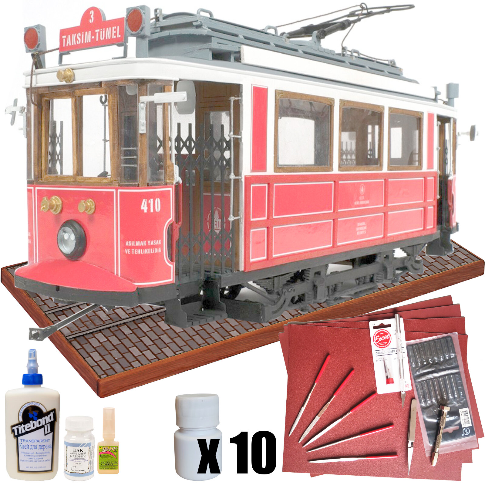 Стамбульский трамвай, 1869 год, 378х225х96 мм, М.1:24, сборная модель из дерева с подставкой плюс инструменты и краски, лак и клеи, OcCre (Испания): сравнение цен, характеристики, фото, актуальное наличие и цены.