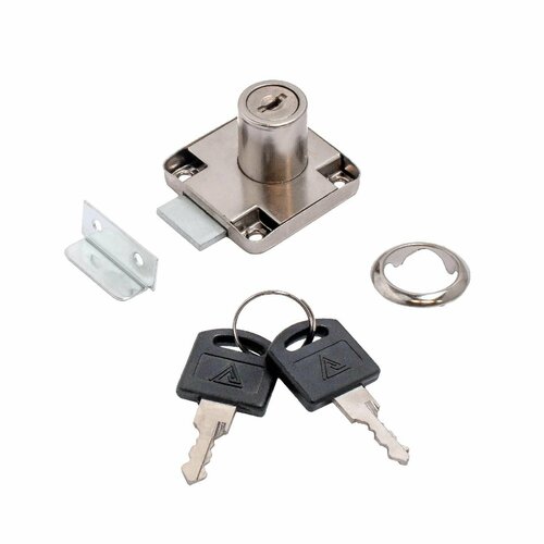 Мебельный замок, устанавливается на двери и ящики максимальной толщиной - 22мм. Цвет - хром. Комплектация: замок, 2 ключа, декоративная накладка, ответная планка.