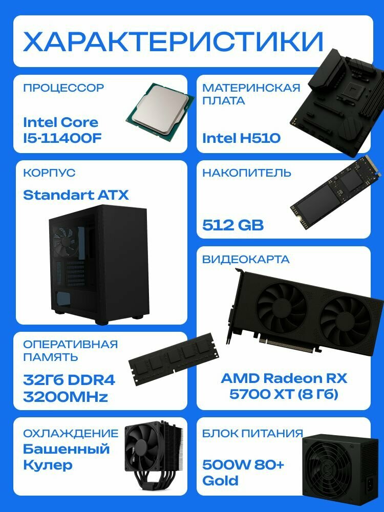 Купить Standart ATX Air чёрный, H510, i5-11400F AIR4, 512 NVME, 32 ГБ DDR4, RX 5700 XT (8 Гб), 500W с доставкой по всей России. Standart ATX Air чёрный, H510, i5-11400F AIR4, 512 NVME, 32 ГБ DDR4, RX 5700 XT (8 Гб), 500W: сравнение цен, характеристики, фото, актуальное наличие и цены.